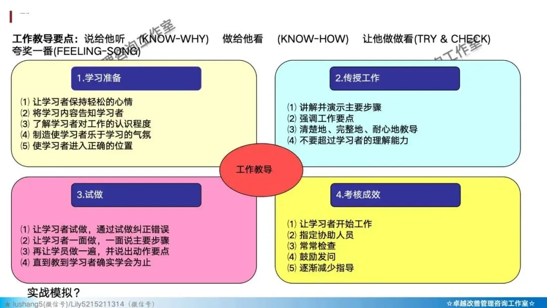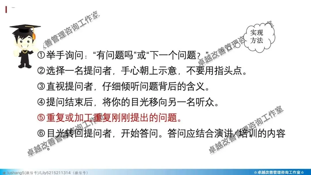 · 处理遗忘/错误:坦诚承认或巧妙转折,比如反问学员:“如果是你,你会怎么做?”。