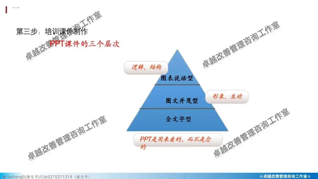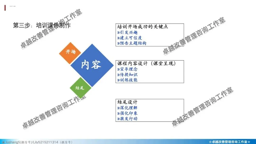 · 结构清晰:多用“第一、第二、第三”等逻辑词,帮助学员建立框架。