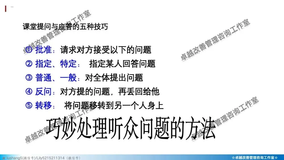 · 应对“挑战者”:先感谢提问,再把问题抛回给学员(“这个问题很有价值,大家怎么看?”),或承诺课后单独探讨,避免现场陷入辩论。