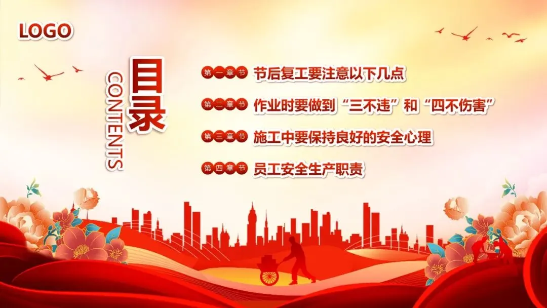 当前位置:首页>PPT>PPT ‖ 节后复工系列【第5套】01-节后复工安全生产培训(18页)