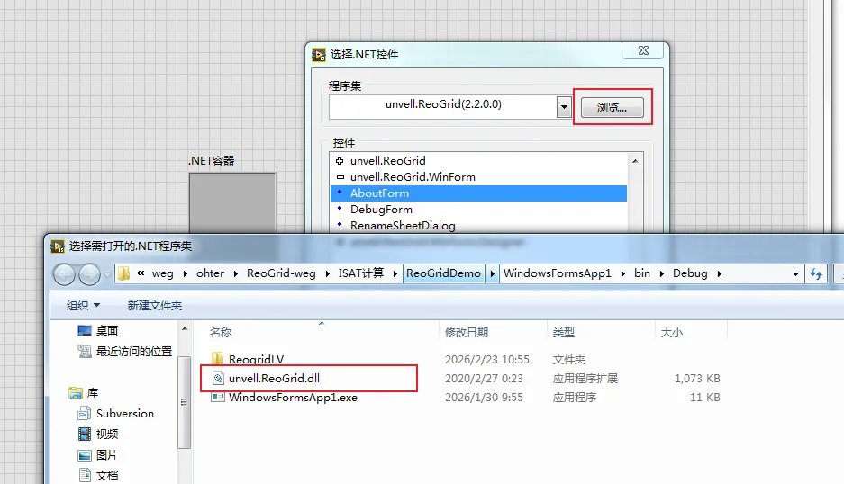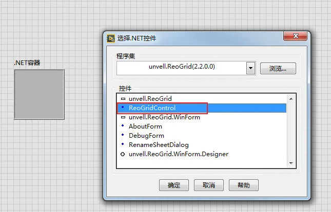 3、选择ReoGridControl控件,默认控件显示不出来要,设置行高列宽或者加载Excel文件。