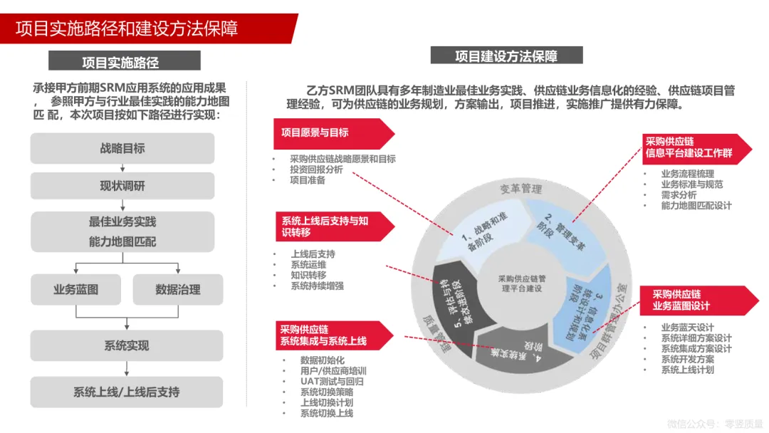 该文件是一套面向制造企业采购供应链数字化转型的供应商关系管理(SRM)项目整体解决方案,围绕通采与非采全业务场景,从企业能力、项目规划、解决方案、实施保障到成功案例进行全面阐述,旨在通过数字化手段构建合规、透明、高效的供应平台。