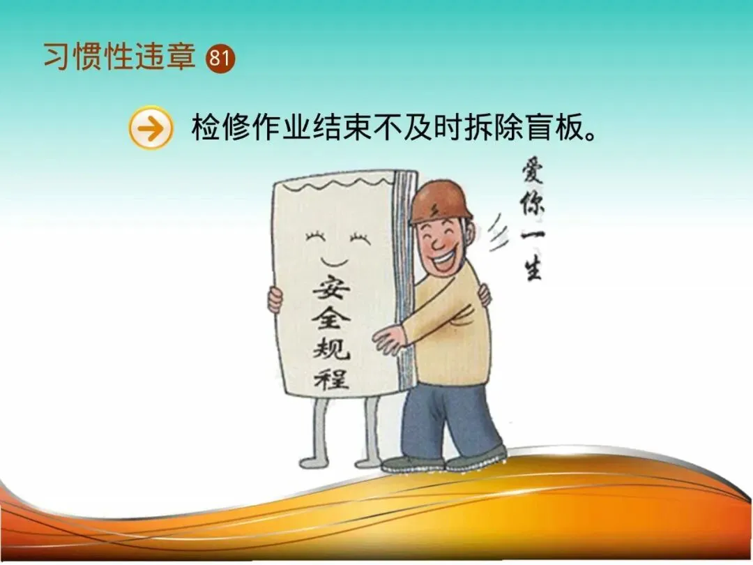 这一百个案例,仅仅是习惯性违章海洋中的几朵浪花。每一个案例背后,都可能是一个残缺的家庭、一段逝去的生命和一笔巨大的损失。习惯性违章的根源,在于侥幸心理、麻痹思想、省能省事心态以及对风险认识的严重不足。