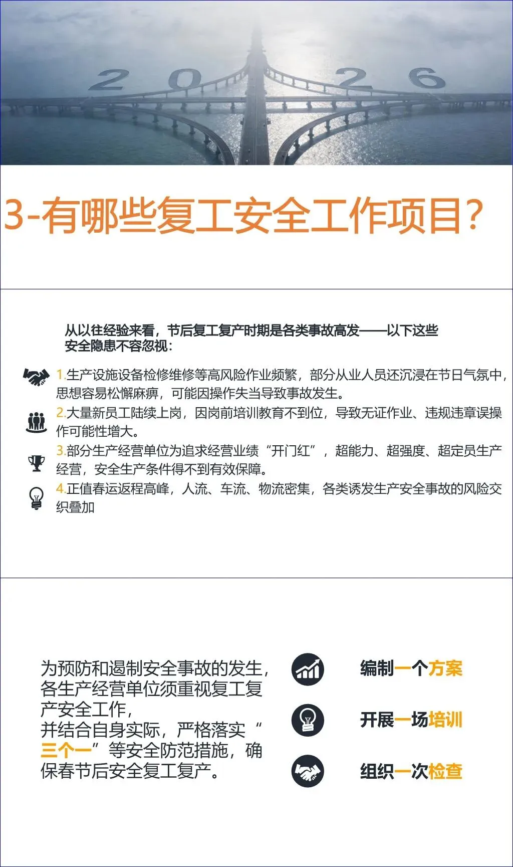 高风险叠加: 复工复产期间,设备设施可能因停用出现故障,新员工上岗培训不足,企业为追求“开门红”可能超负荷生产,加之春运返程人流物流密集,风险极高。