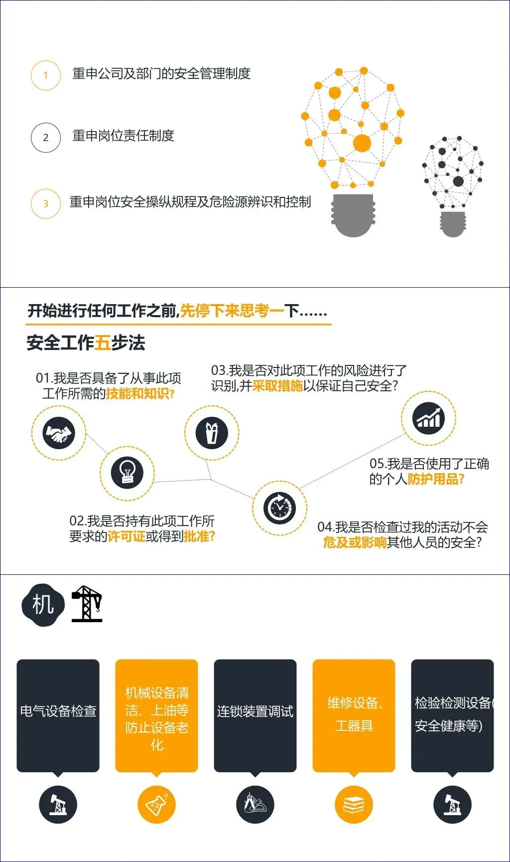 人(Man): 关注员工思想动态,重申安全制度和操作规程,推行“安全工作五步法”(思考技能、许可、风险、影响、防护)。