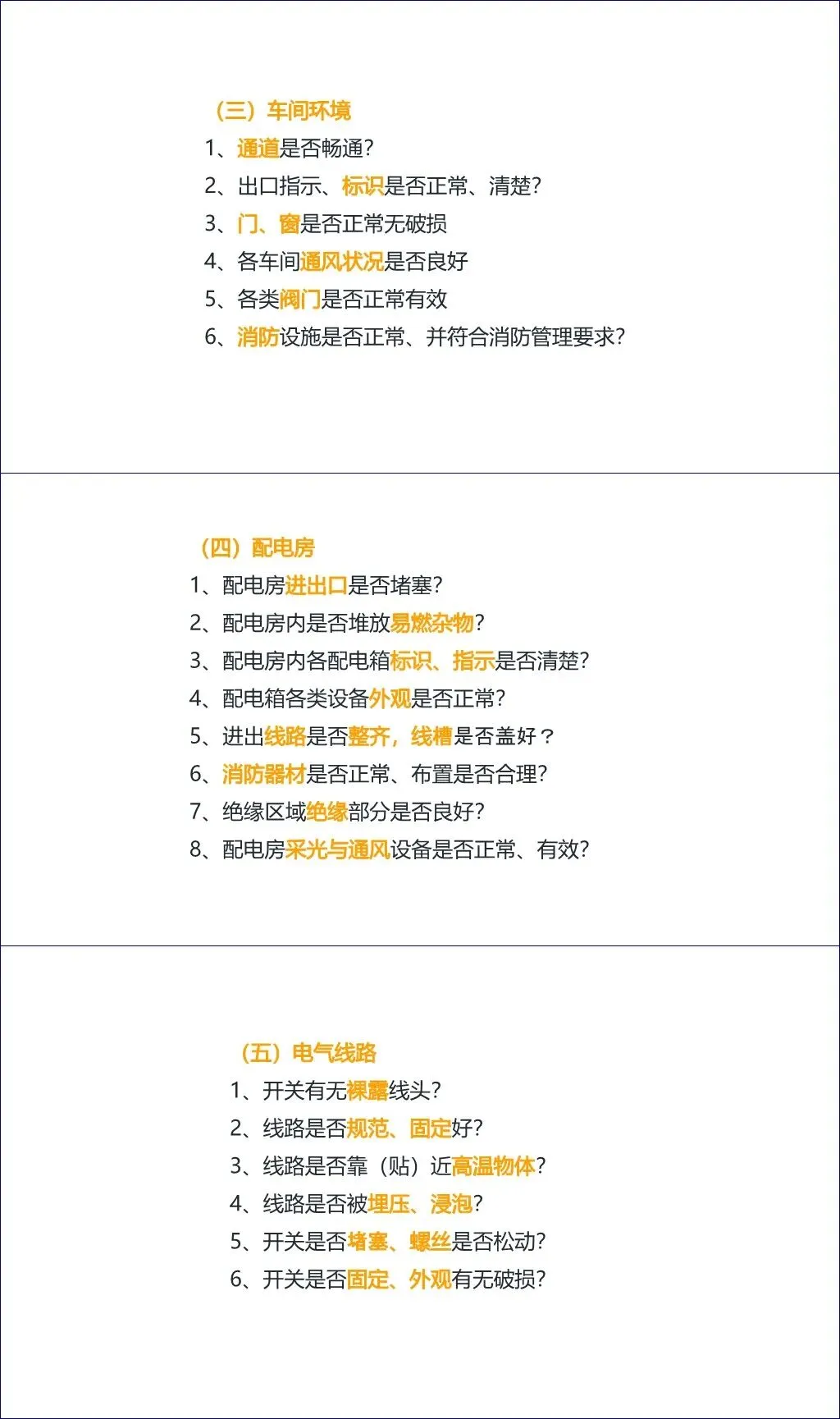 环(Environment): 排查厂区及车间环境隐患,确保通道畅通、照明充足、通风良好,消除湿冷、易燃易爆等环境风险。
