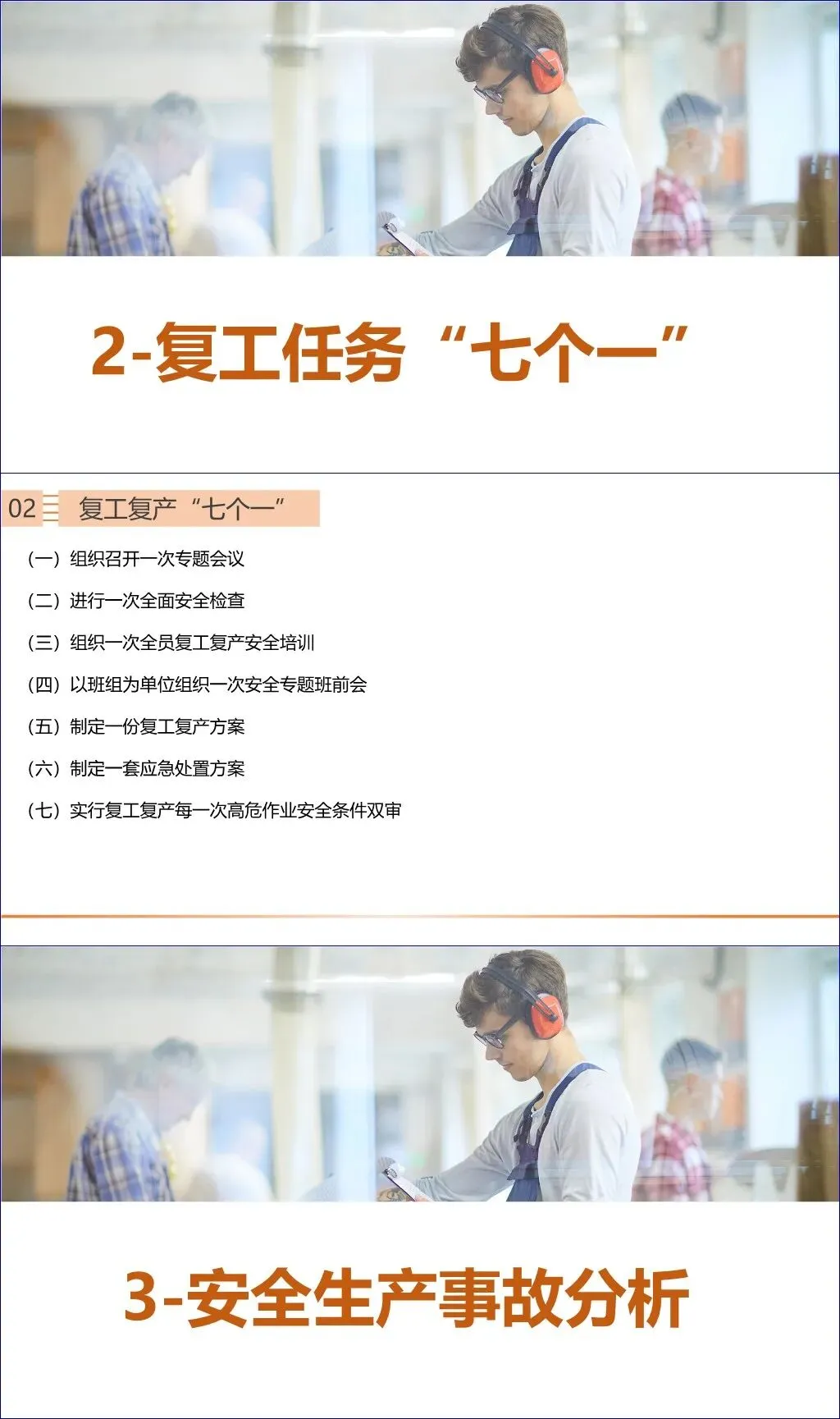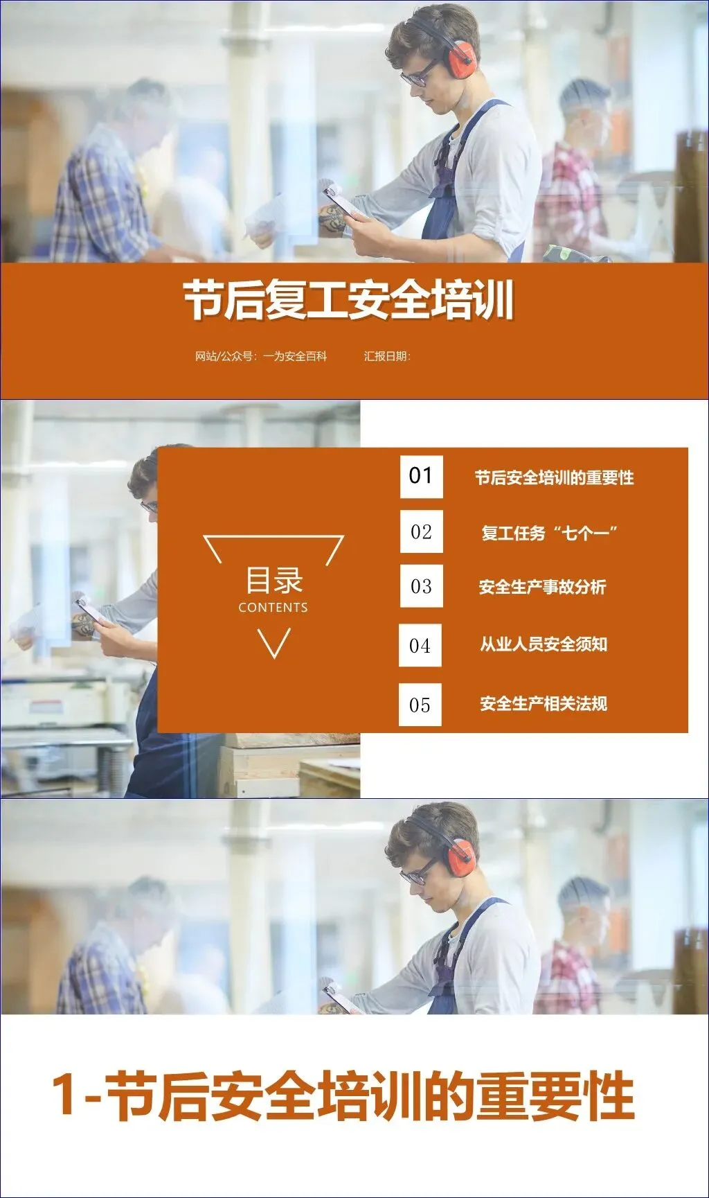 《节后复工复产安全培训》,旨在指导企业在春节等长假后如何安全、有序地恢复生产。文档内容结构清晰,主要分为五个核心部分: