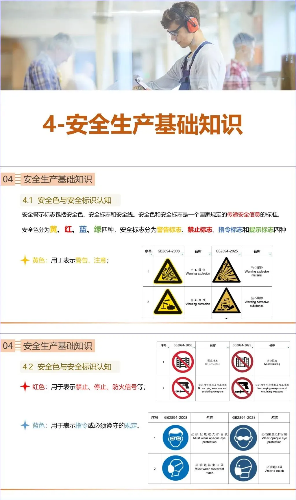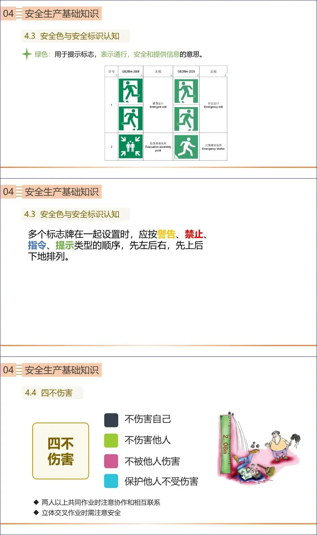 视觉识别:详解安全色(红禁、黄警、蓝令、绿通)及安全标志的排列顺序。