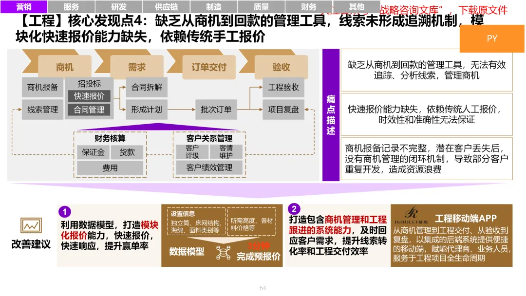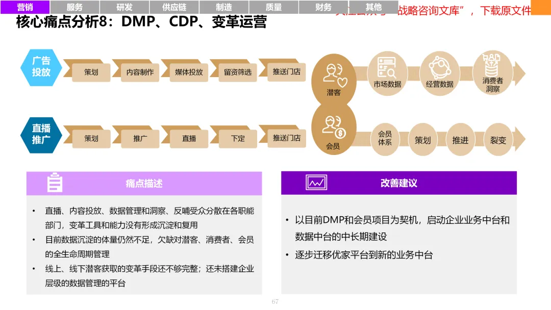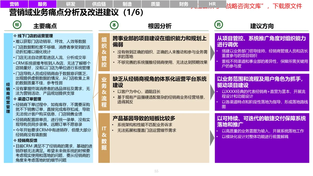 163页PPT制造业变革转型八大领域:营销、服务、研发、供应链、制造、质量、财务及人力资源的痛点与改进策略