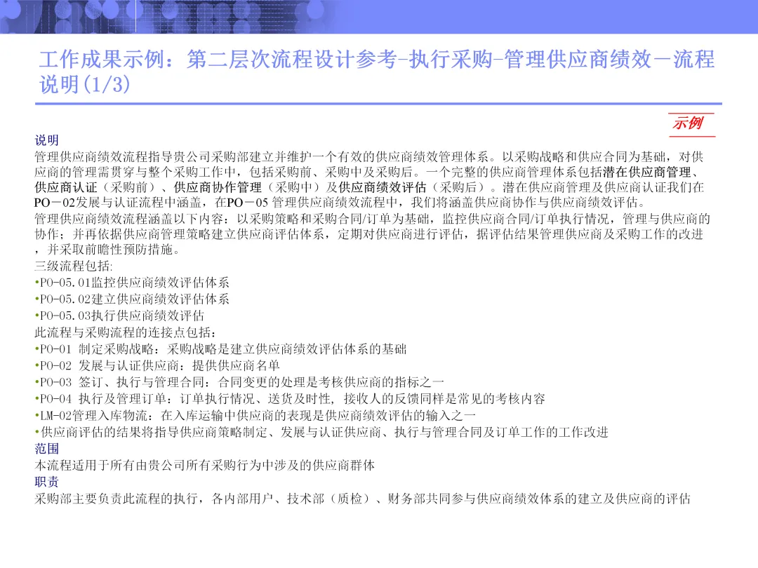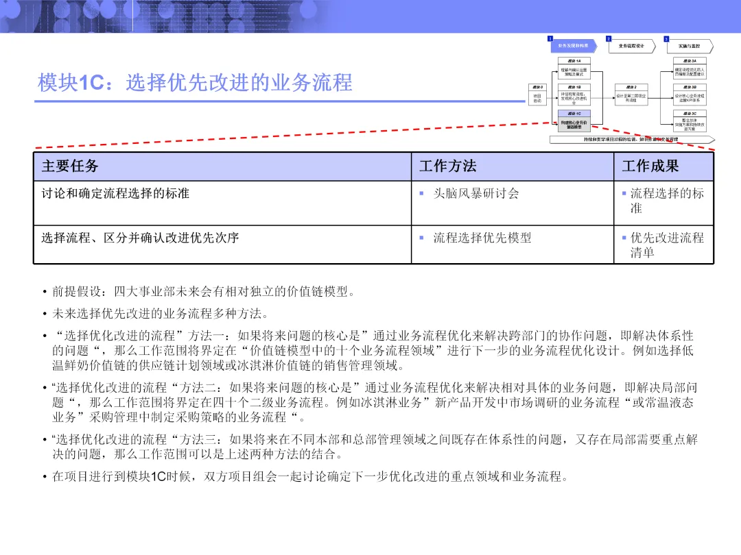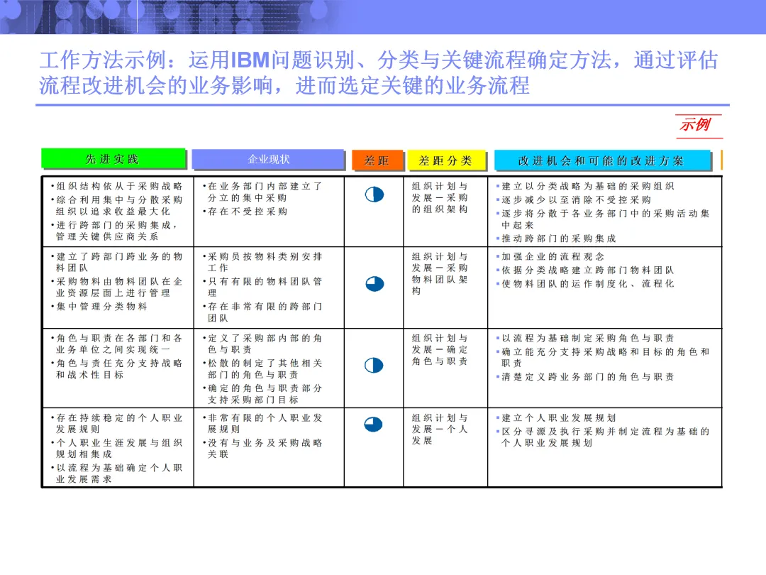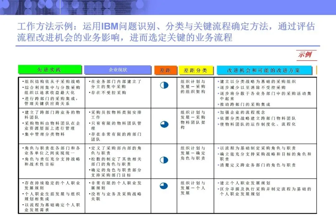 尤其值得注意的是其对流程改进机会的评估方式。通过成熟度模型与根源分析,不仅定位当前短板,更透过问题表象追溯至战略缺失、管控模式或系统能力等深层原因。在选定优化流程时,亦根据业务影响与实施难易,区分短、中、长期改进步骤,体现出了务实的分阶段推进思路。