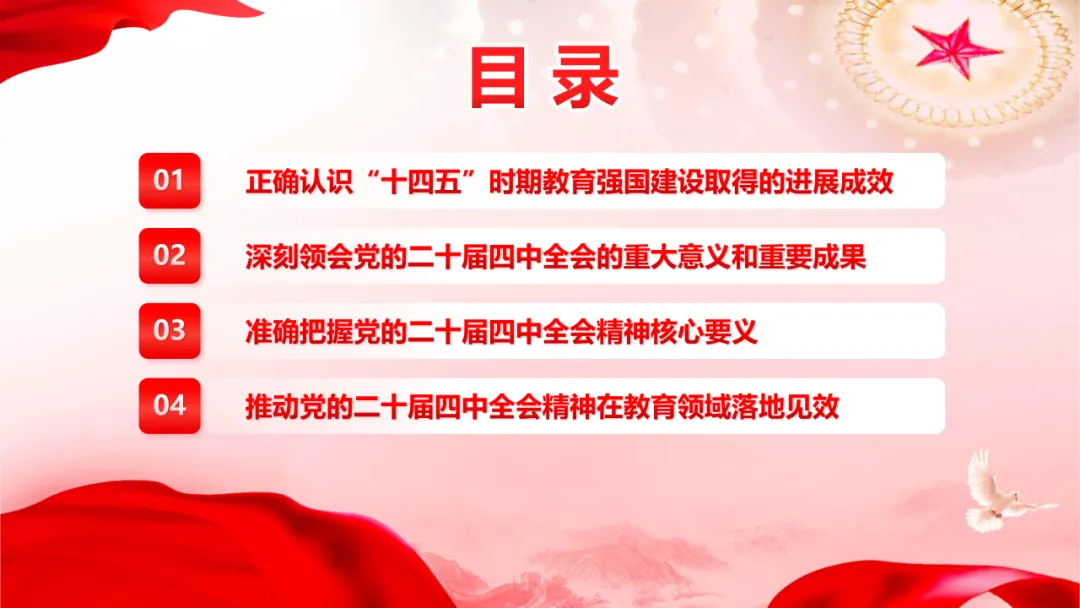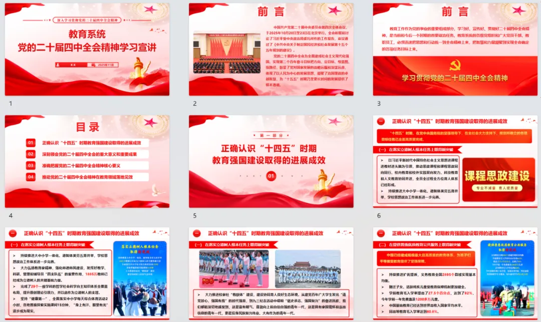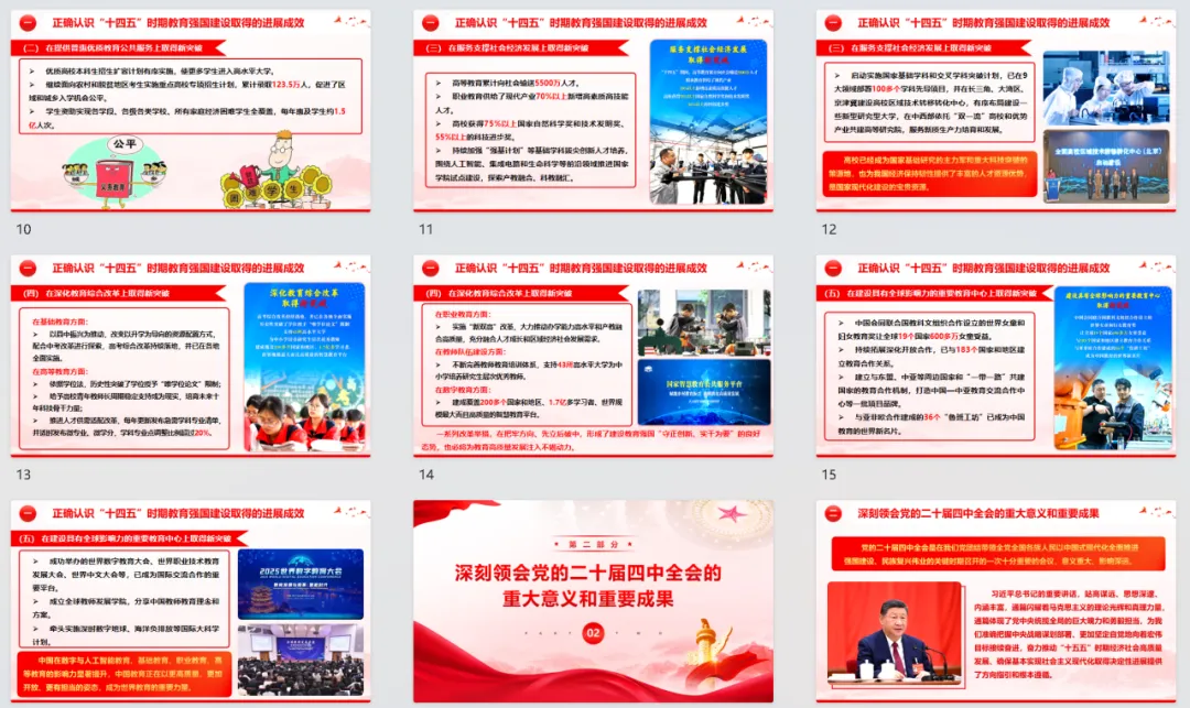 最新整理的《教育系统学习贯彻党的二十届四中全会精神专题辅导授课》PPT,聚焦全会精神在教育系统的实践应用,系统阐释教育强国建设成就与未来发展任务。PPT制作精美,内容紧扣教育实际,讲解深入浅出,能够帮助教育工作者深入把握全会精神要义。