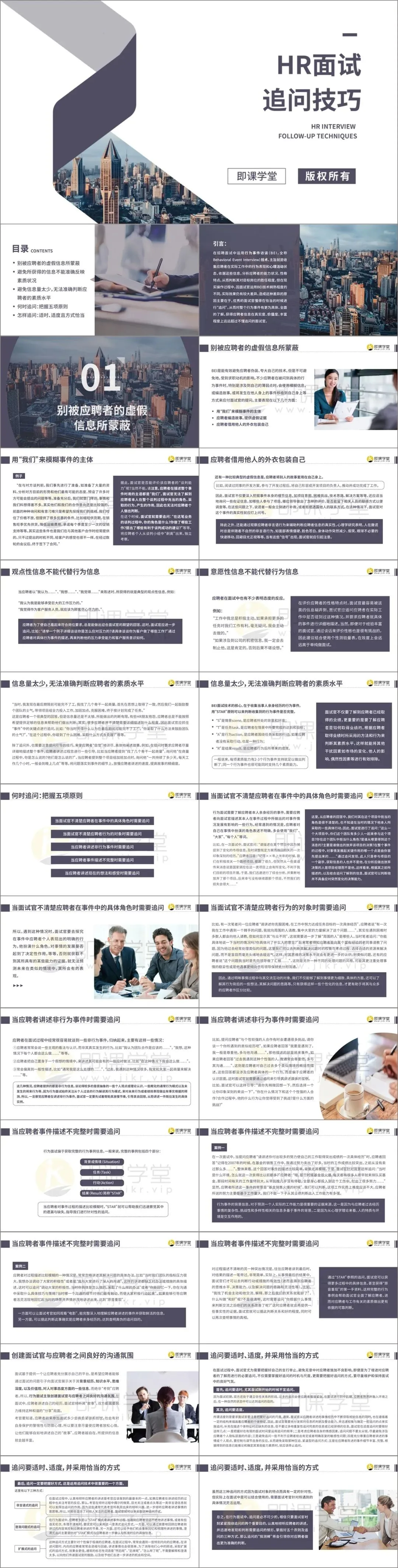 2套面试追问培训PPT,制作精美,内容完整,可自学,可内部培训使用。部分PPT页面截图展示如下: