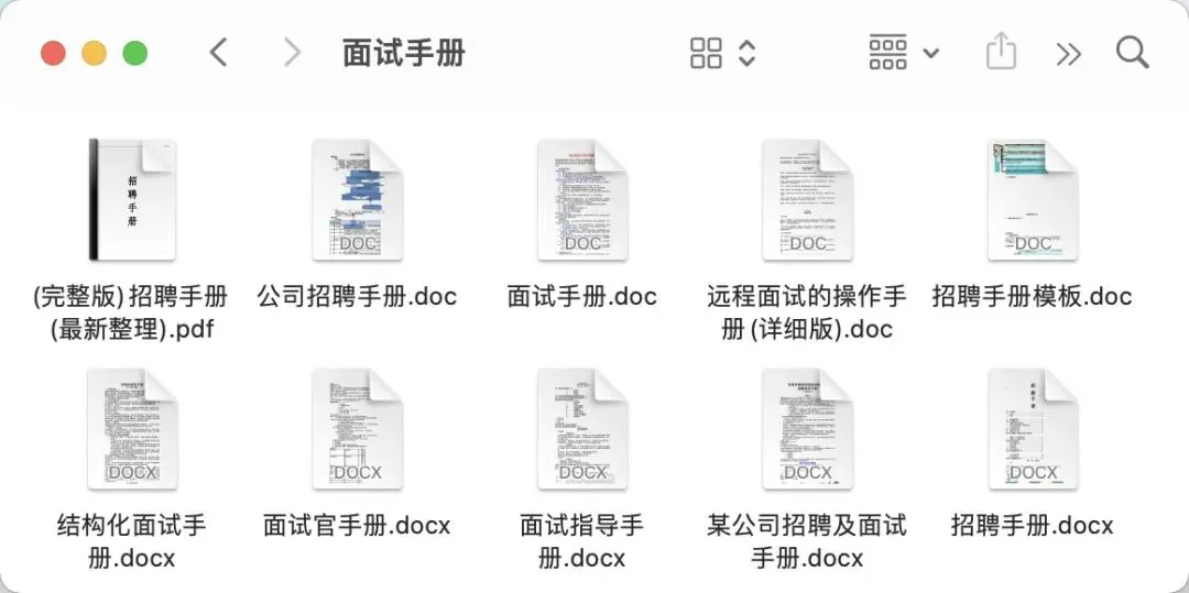 10份面试操作手册,帮助老HR快速建立企业招聘规范,帮助新HR快速上手工作。