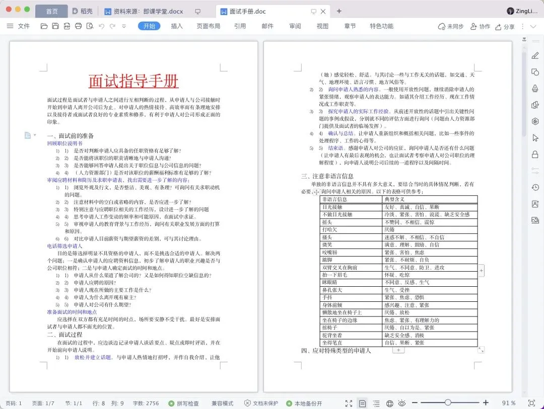 10份面试操作手册