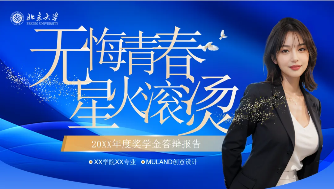 操作超简单:打开工具,直接输入“帮我做 XX 主题的 PPT 标题字体,风格是 XX,无背景”。比如做 “无悔青春,星火滚烫”,就输 “无悔青春,星火滚烫,蓝色科技风背景,土黄加白色渐变字体,”。生成后下载 PNG 格式,这样放到 PPT 里不会有白边。
