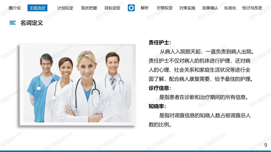 责任护士定义:从病人入院那天起,一直负责到病人出院。责任护士不仅对病人的机体进行护理,还对病人的心理、社会关系和家庭生活状况等进行全面了解,配合病人康复需要,给予最佳的护理。
