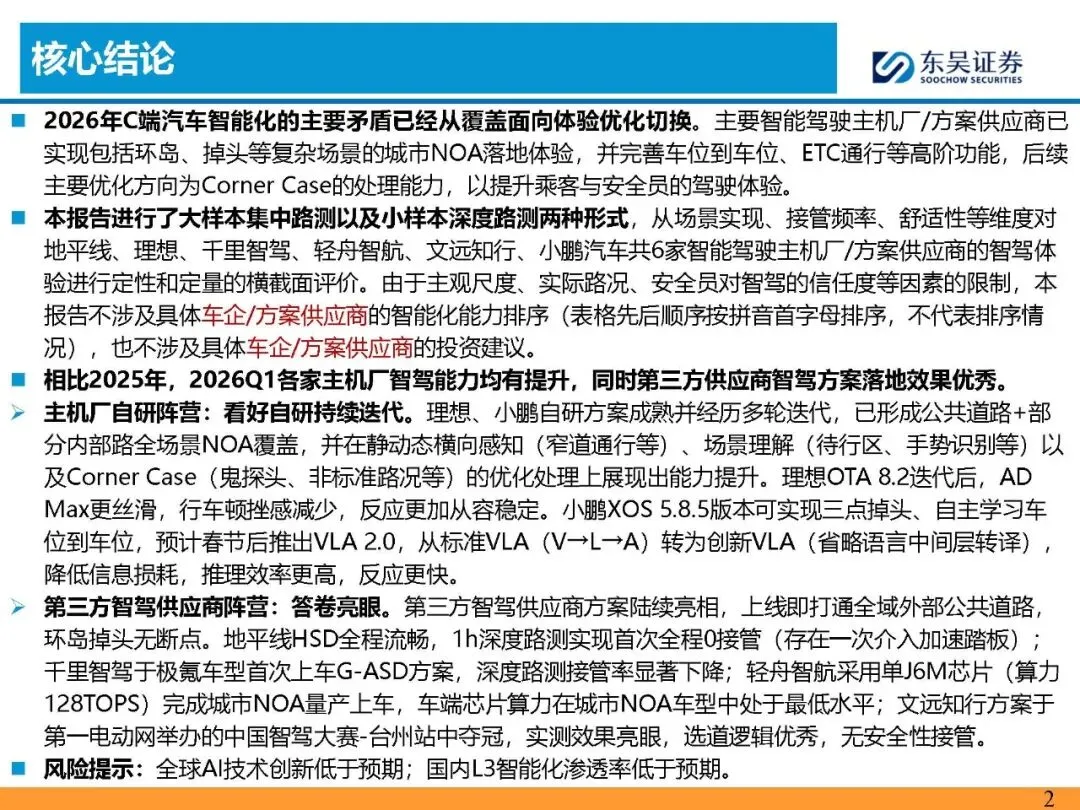 >PPT | 汽车行业:2月上海篇~2026年主流车企城市NOA试驾报告