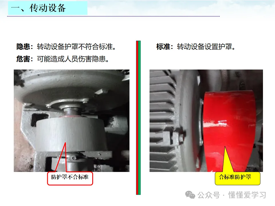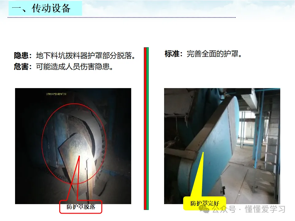 - 防护、保险、信号等装置的缺陷:具体表现为防护罩缺失、保险装置失效等。这些缺陷可能导致设备在运行时无法提供有效的保护,增加事故发生的风险。例如,某台机器的防护罩缺失,工人在操作时不慎触碰运转部位,导致手部受伤。