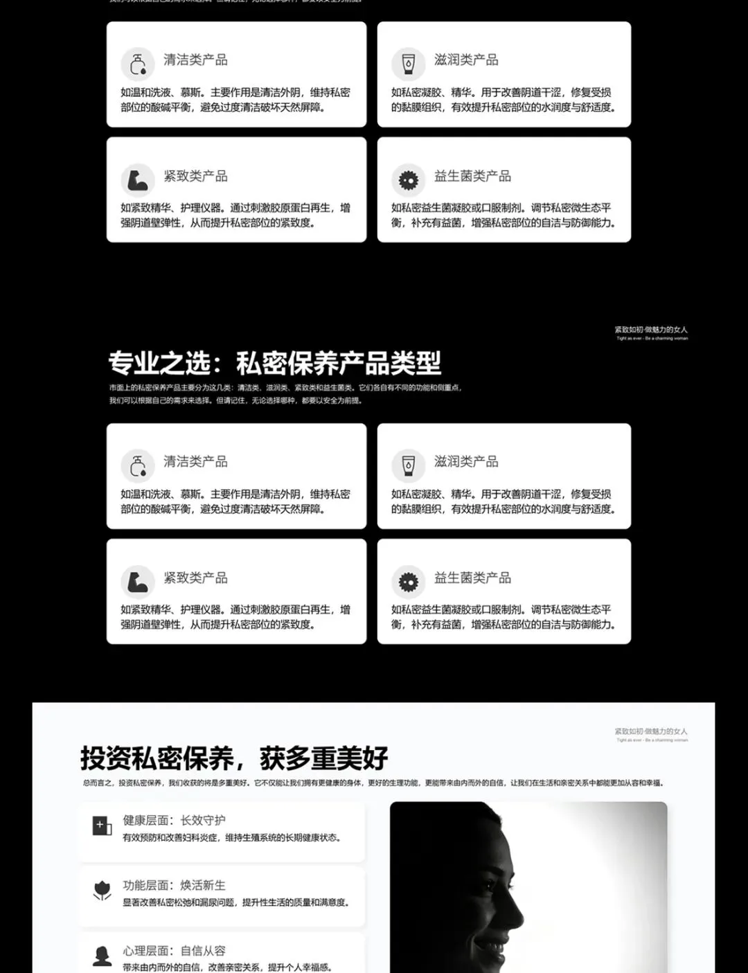 全日制一对一服务,致力协助打造高端私密品牌,重塑私密行业的标杆!VIP包月服务贴心,重点板块涉及医美医疗、医美私密、面部抗衰等,包括早晚安图、医美知识点、医美品牌海报、节假日海报、个人IP打造海报、线下会务会场、会所展板展架、画册logo等服务项目