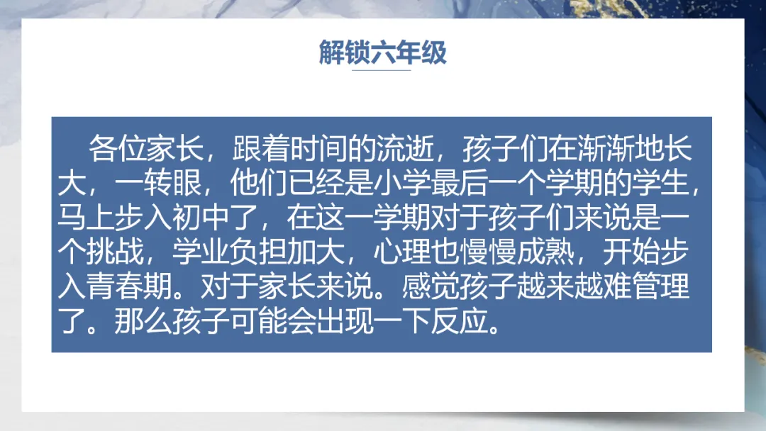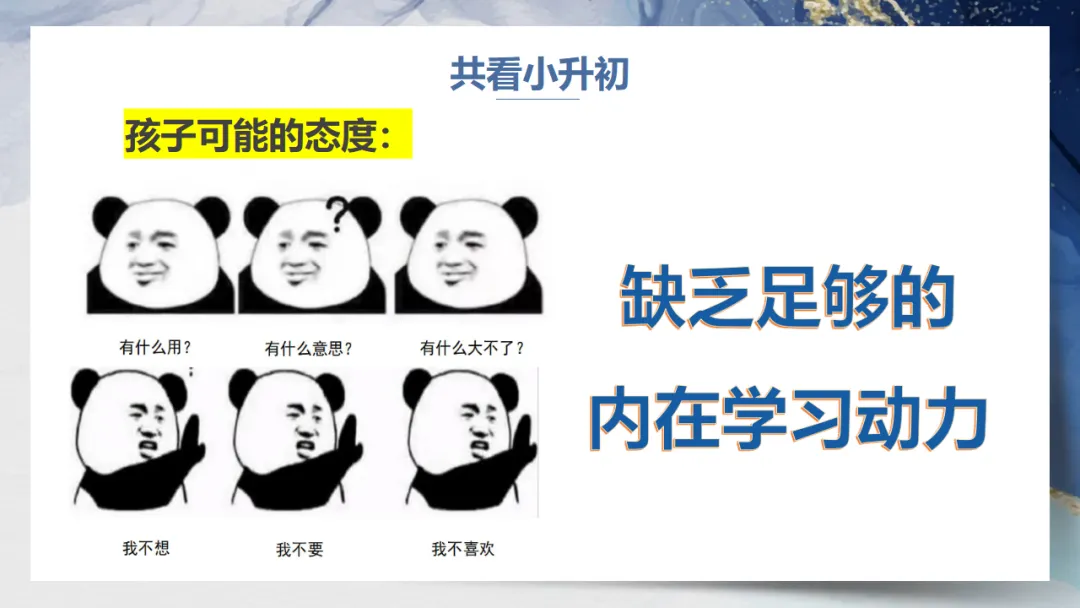今天给老师分享 【六年级下学期数学开学家长会ppt】苦在当下,赢在未来,一场没有废话的家长会 的课件,ppt课件一共64页。课件无水印 ,可编辑修改。(文末有课件资料的获取方式)一、 共看小升初