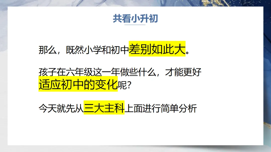 那么,既然小学和初中差别如此大。孩子在六年级这一年做些什么,才能更好适应初中的变化呢?今天就先从三大主科上面进行简单分析