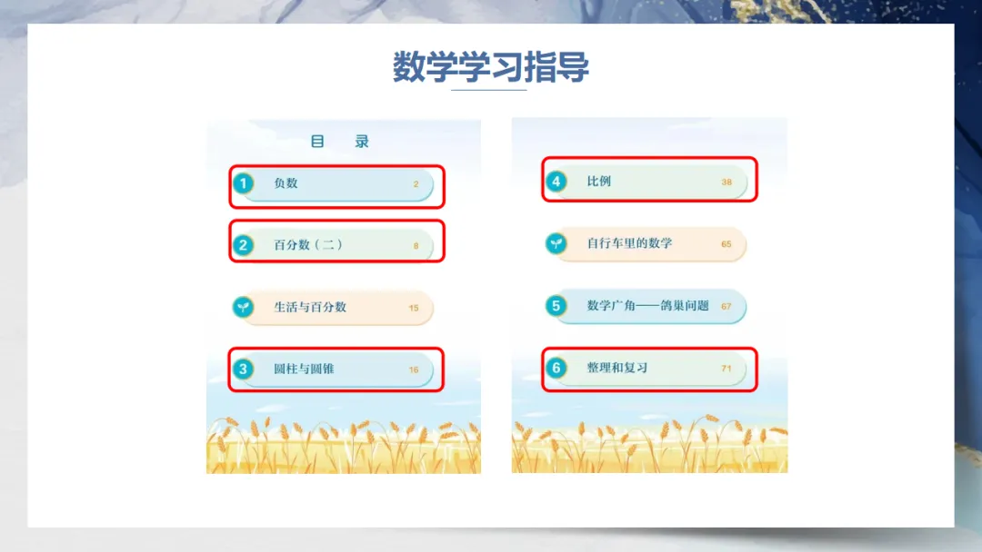 (1)数的认识(2)式与方程(3)比和比例(4)数的运算