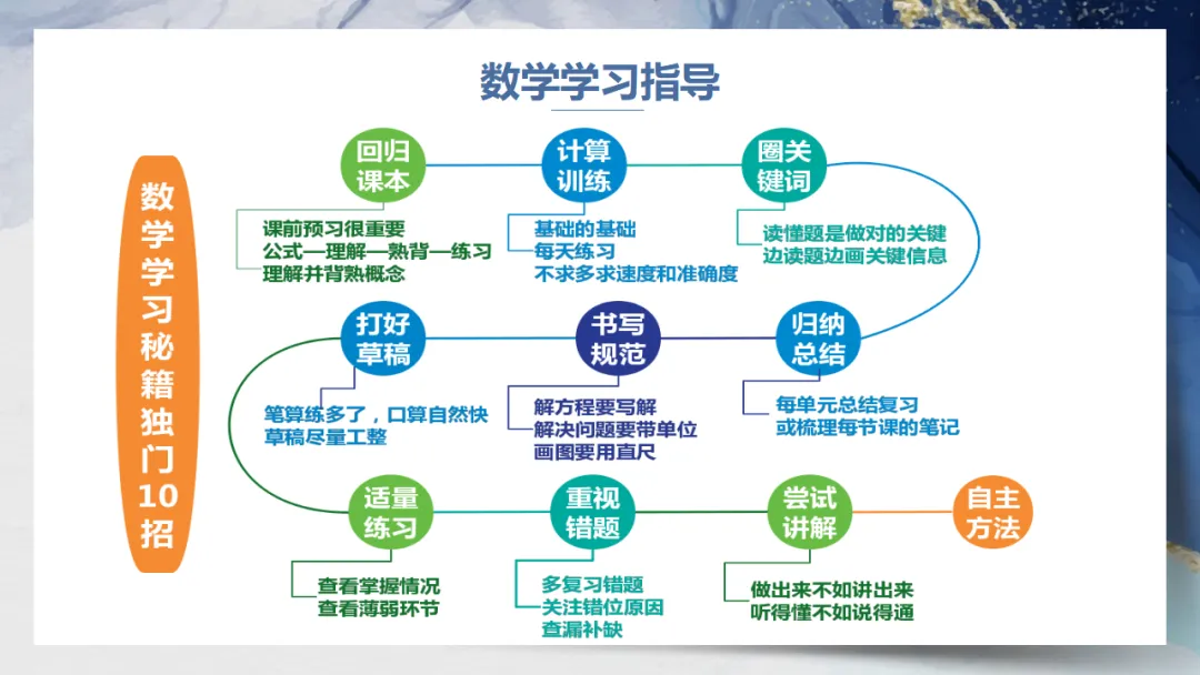 数学:计算能力很重要,小学的时候计算比别人慢。那到初中这个差距就会被越拉越大!那么在六年级要学会归纳、总结、改错。然后家长帮助孩子梳理数学知识体系和结构,掌握综合运用知识解题的能力