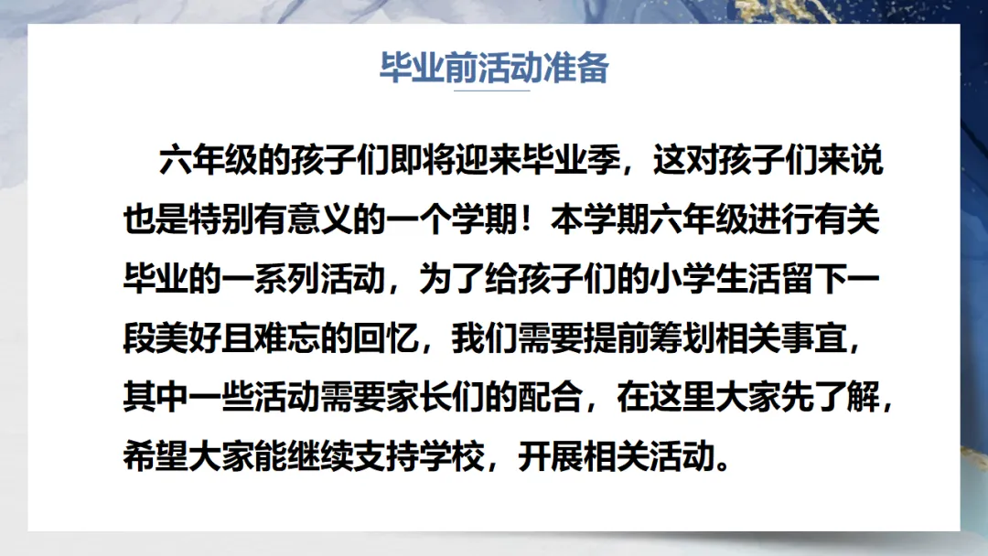 校园安全。在学校经常教育孩子不要追逐打闹,但是爱玩是孩子的天性,有些事情难以避免,因此需要咱们家长给老师多一些理解和包容。