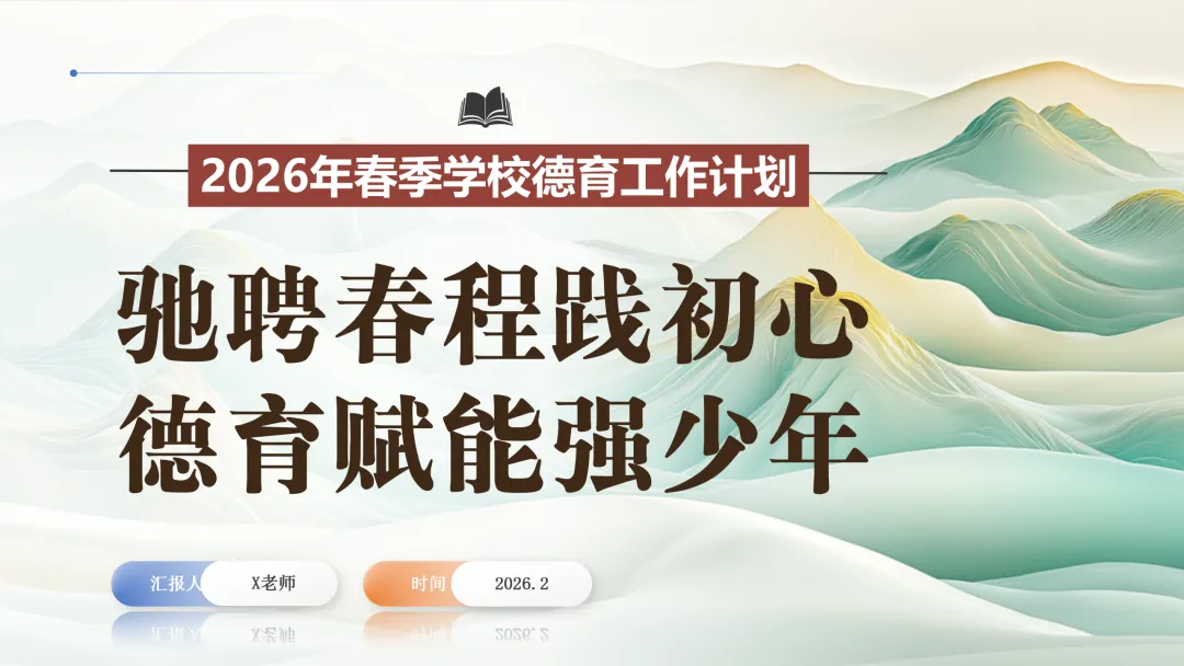 很高兴在这与您相遇,如果您是一位班主任老师,每天除了应对繁重的教学工作,还要加班整理班级、教务、教研、课件PPT资料,请关注下方的“春雨教务资料”,让我们风雨同路、一起成长~今天分享的是2026年春季学校德育工作计划的ppt课件和配套的文字稿,主题是《驰聘春程践初心,德育赋能强少年》2026年春季学校德育工作计划逐字发言稿