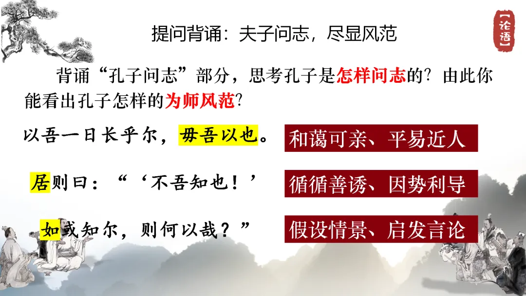 阅读“孔子问志“部分,思考孔子是怎样问志的?由此你能看出孔子怎样的为师风范?