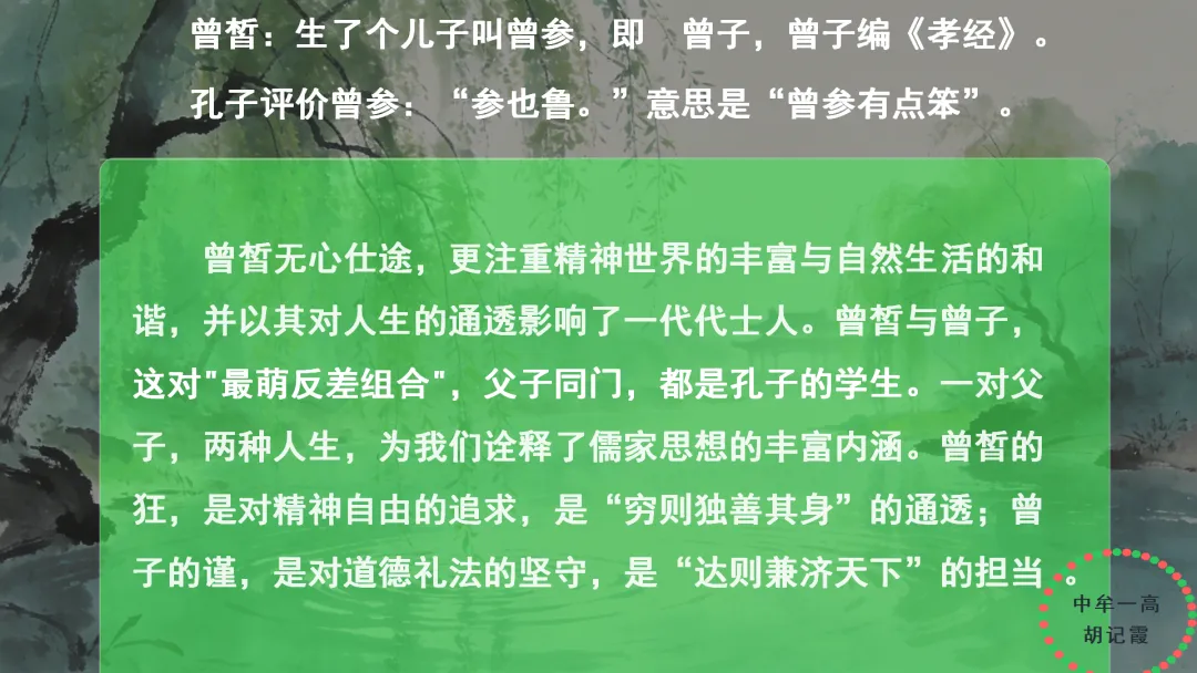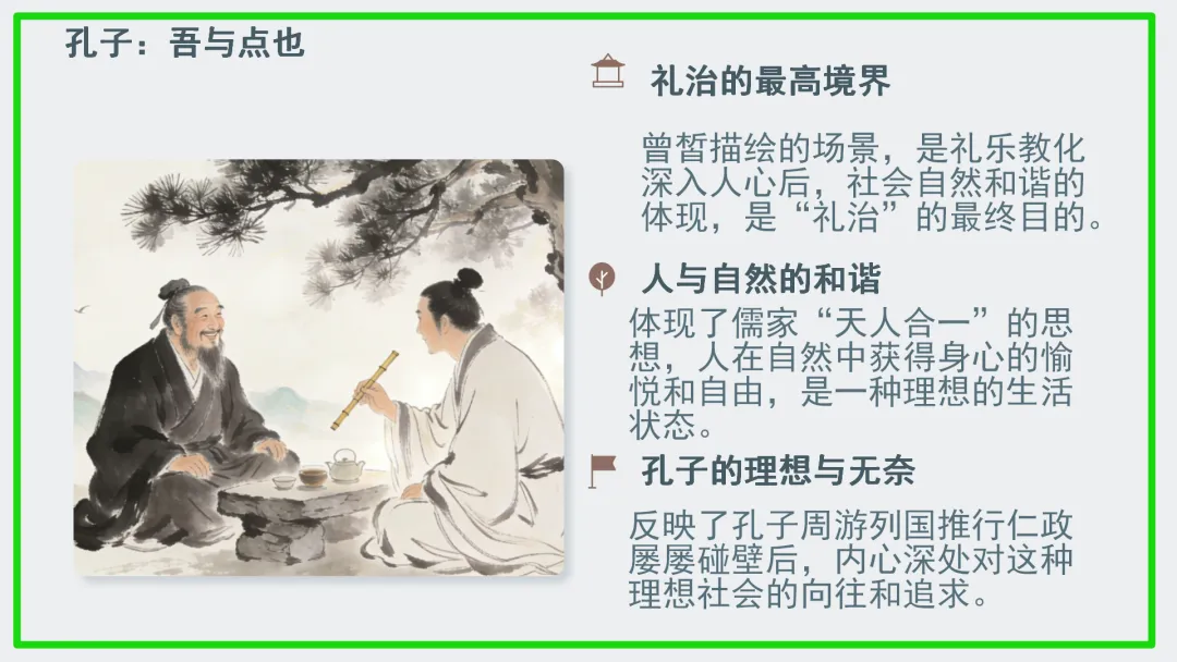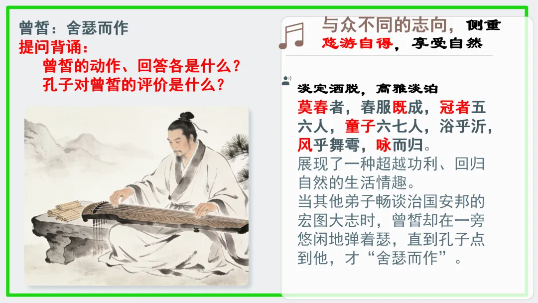 •结合PPT,进一步阐释曾皙之志是超越具体事务的最高理想境界。