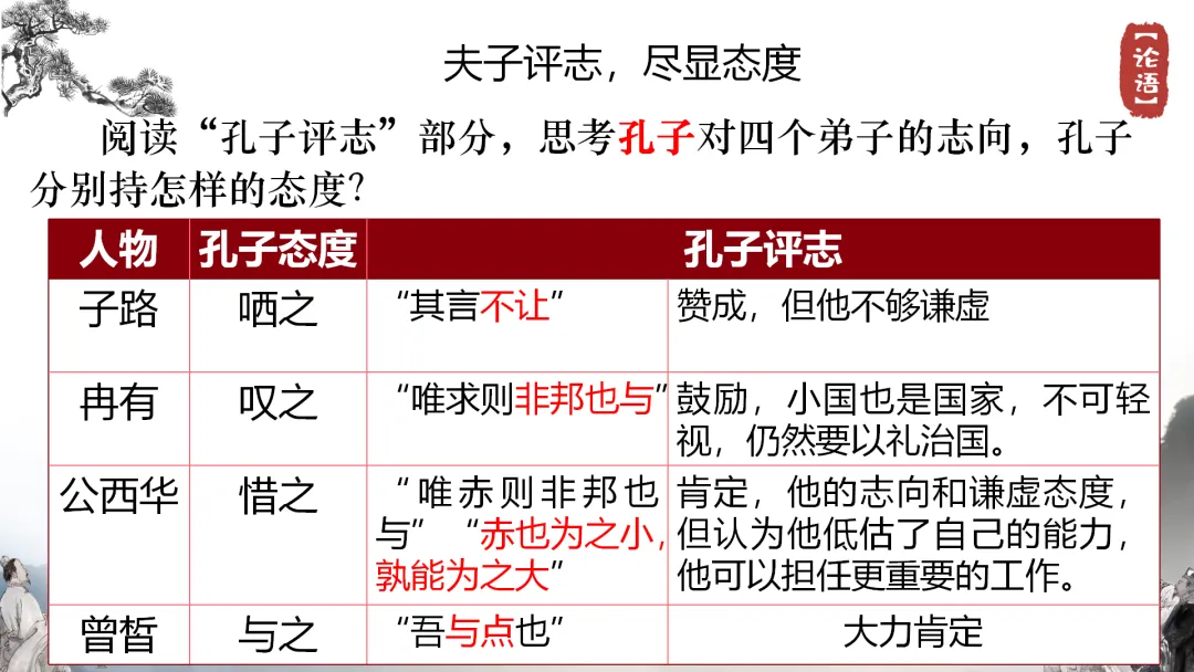 活动三:夫子评志,尽显态度