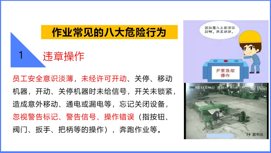 :通报近期发生的复工复产典型事故案例,播放事故警示教育片,用血的教训警示员工增强安全意识。
