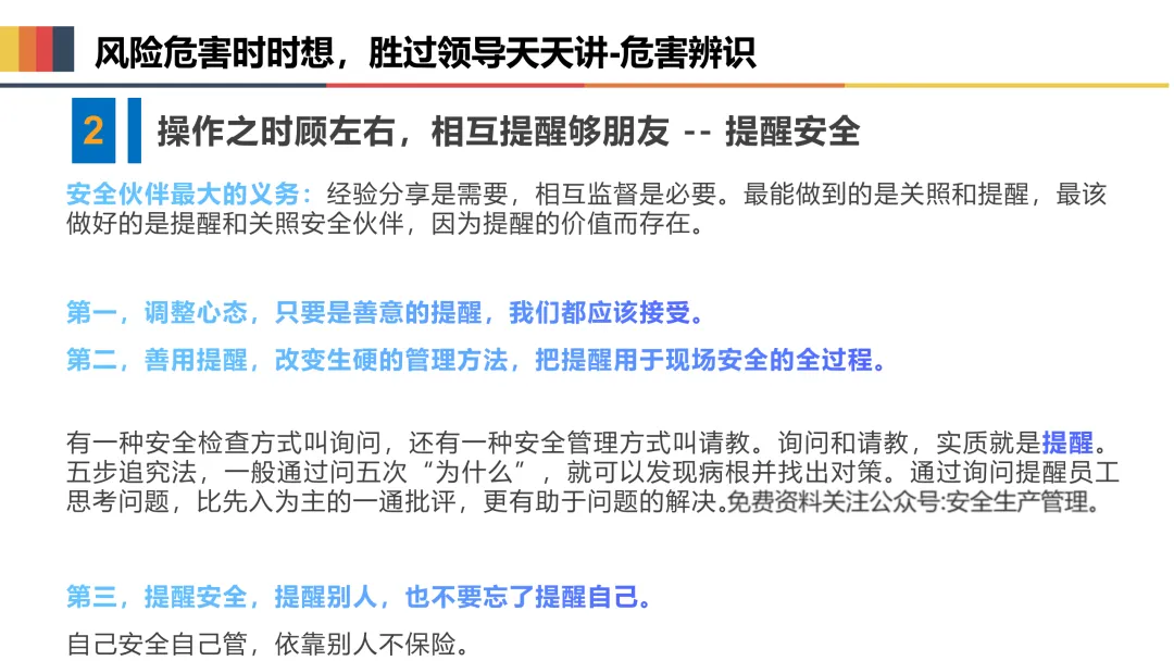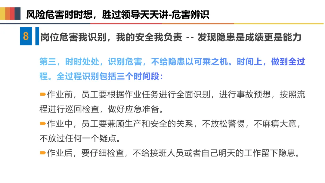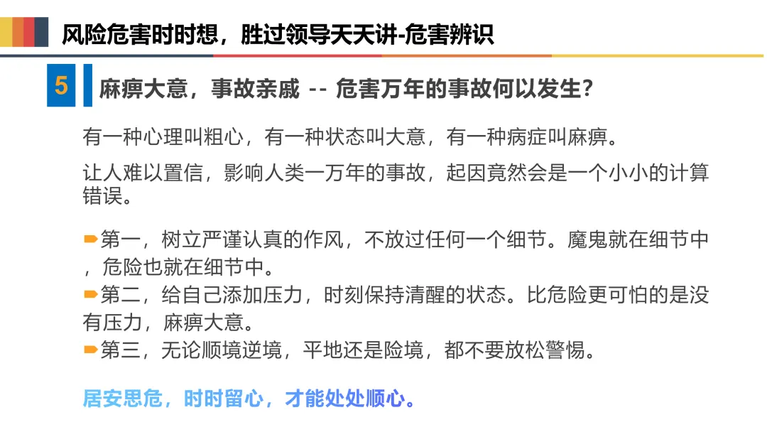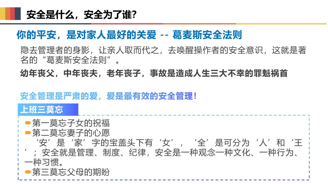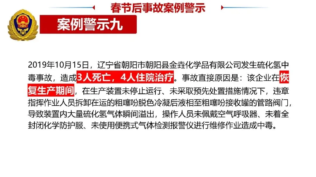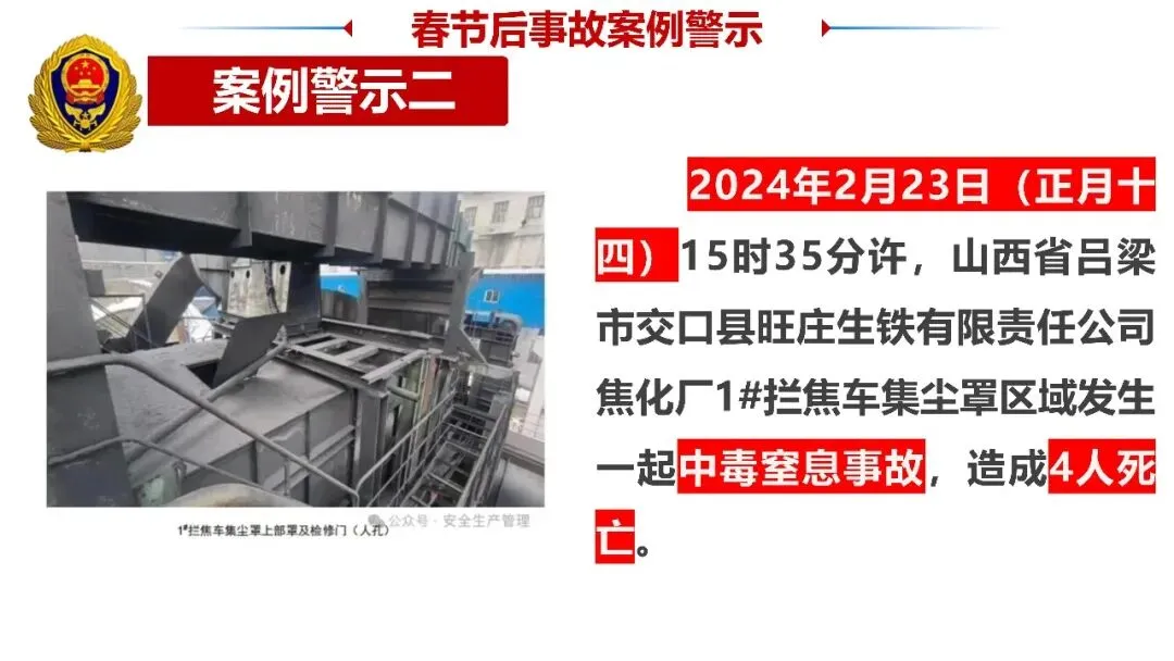 一是收心归位,筑牢思想防线。节后易出现注意力不集中、侥幸麻痹等“节后综合征”,全体人员要迅速调整状态,摒弃松懈心态,深刻认识复工安全的重要性,将安全意识融入每一项操作、每一个环节,坚决杜绝“带病上岗”“违规操作”。