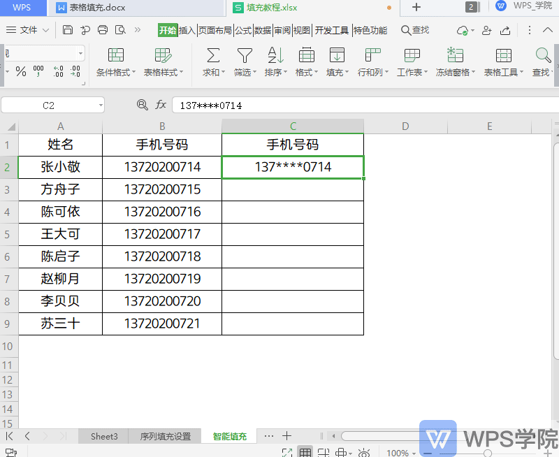关于“智能填充”更详细的使用方法,可以在WPS学院搜索关键词“智能填充”,更多技巧等你来学。