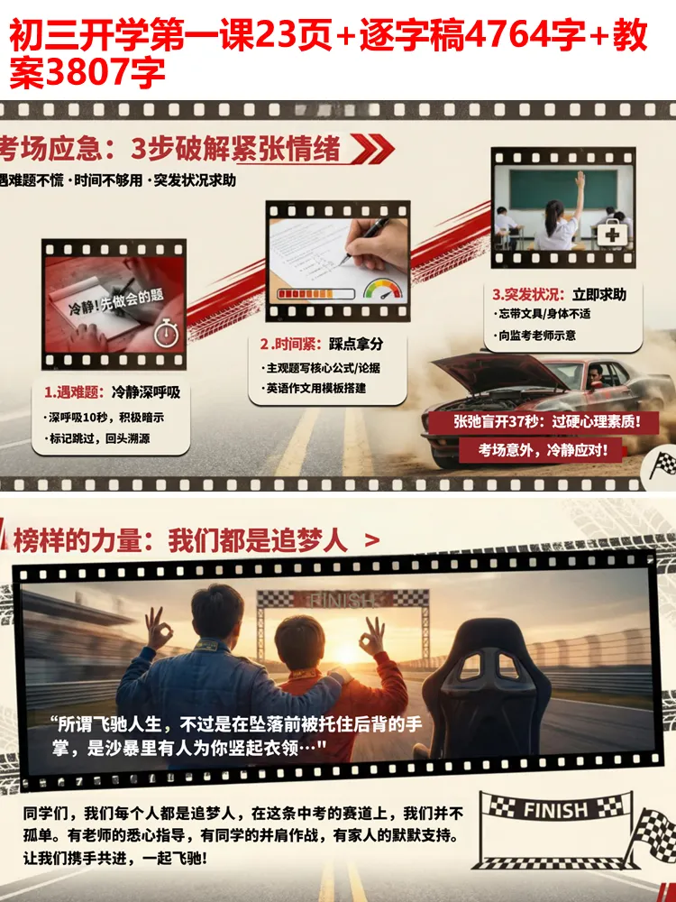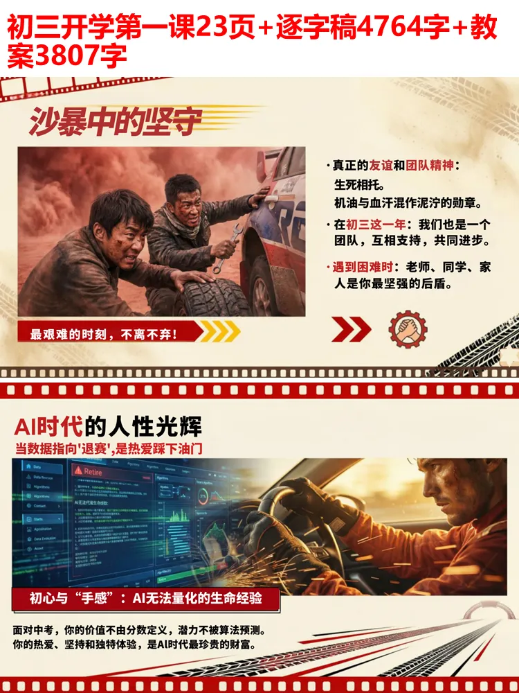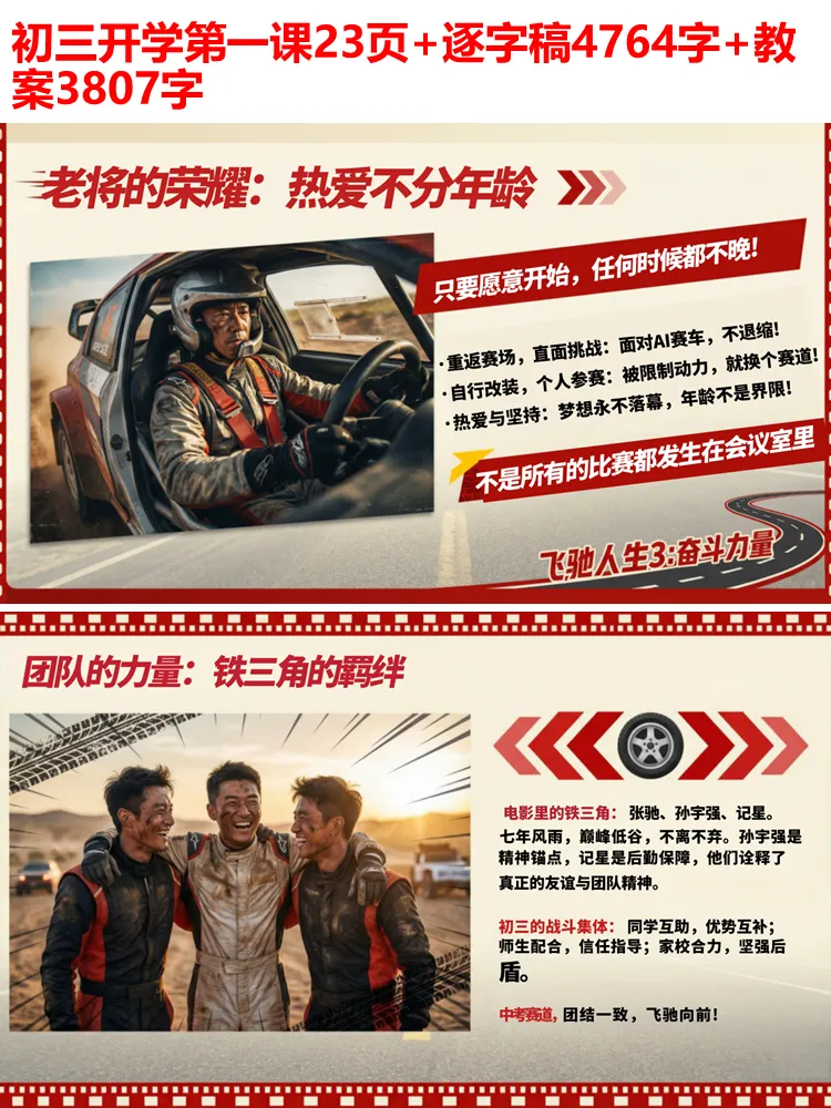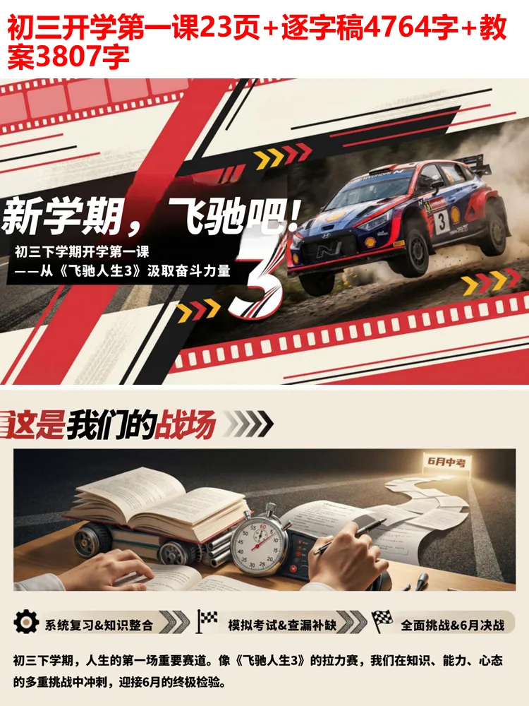 初三下学期,是青春里一场注定热血的冲刺,是人生中第一场重要的赛道角逐。新学期的开学第一课,我们从《飞驰人生 3》中汲取奋斗力量,愿每一位初三学子都能带着热爱与坚持,在中考的赛道上全力飞驰,奔赴属于自己的巅峰。