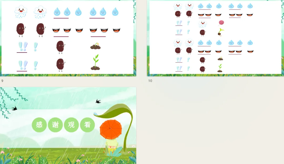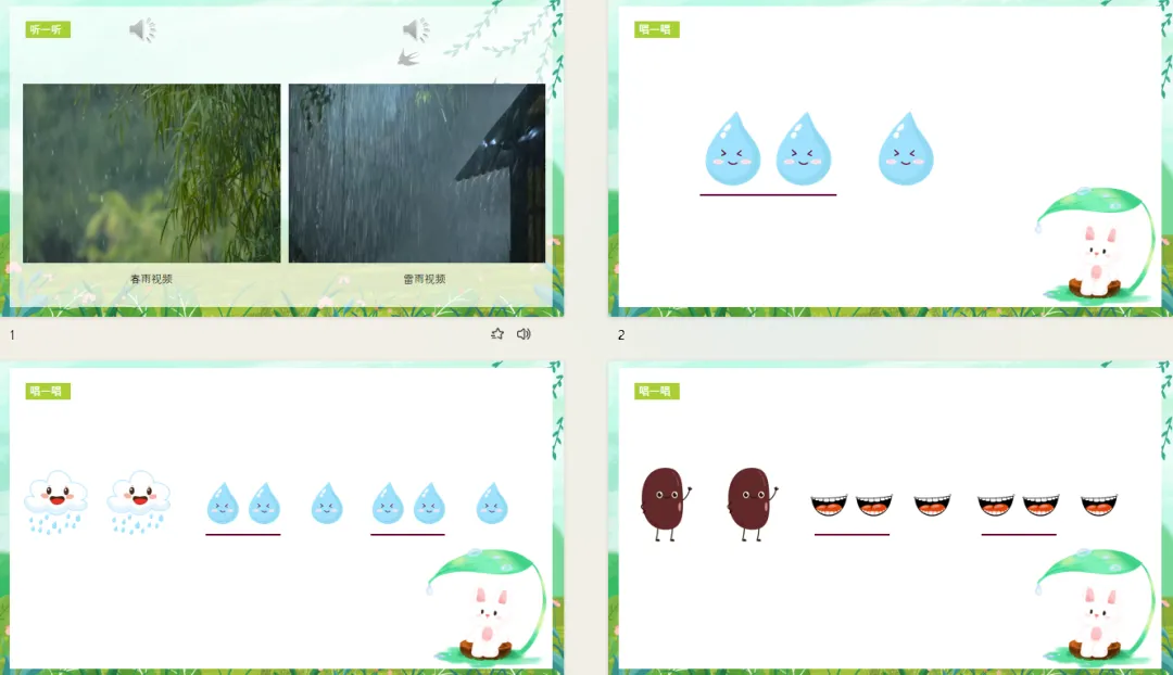 3、感受春雨沙沙、种子萌发、万物复苏的喜悦,能够在音乐和肢体动作中表达自己的情感。