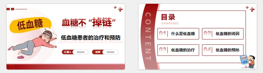 低血糖患者的治疗和预防这样的渐变高级红色PPT设计标准且具有专业性的PPT。