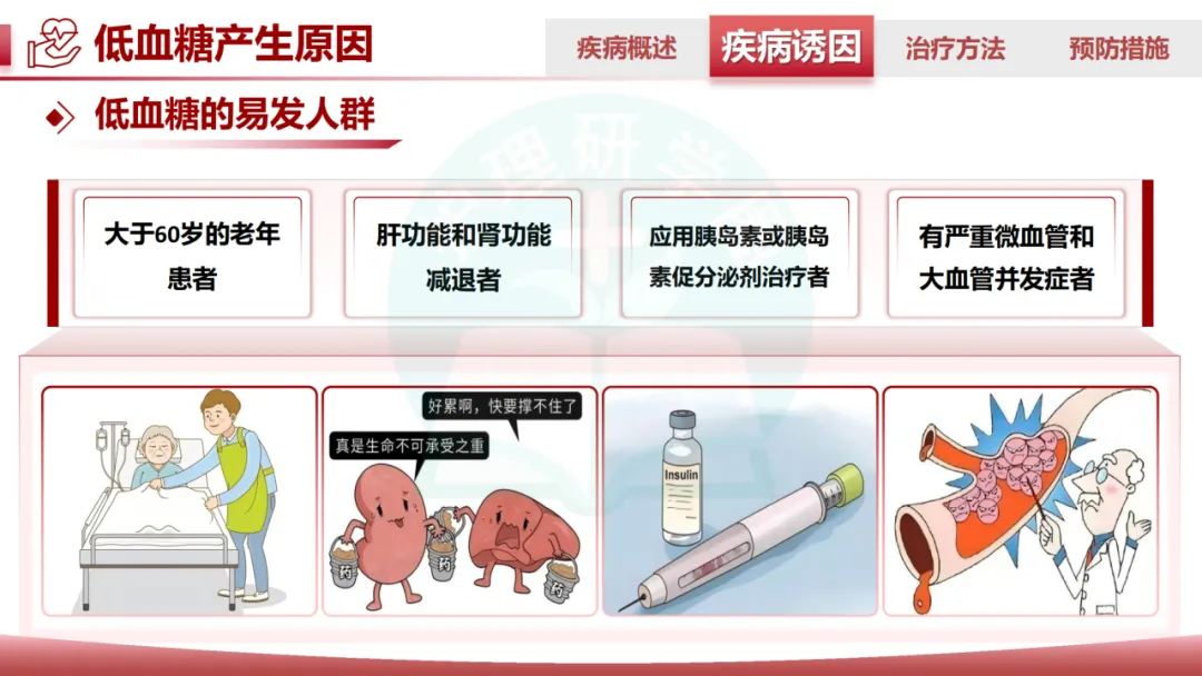 易发人群:60岁🧓老年患者、肝肾功能减退者、应用胰岛素或胰岛素促泌剂者、有严重微血管/大血管并发症者