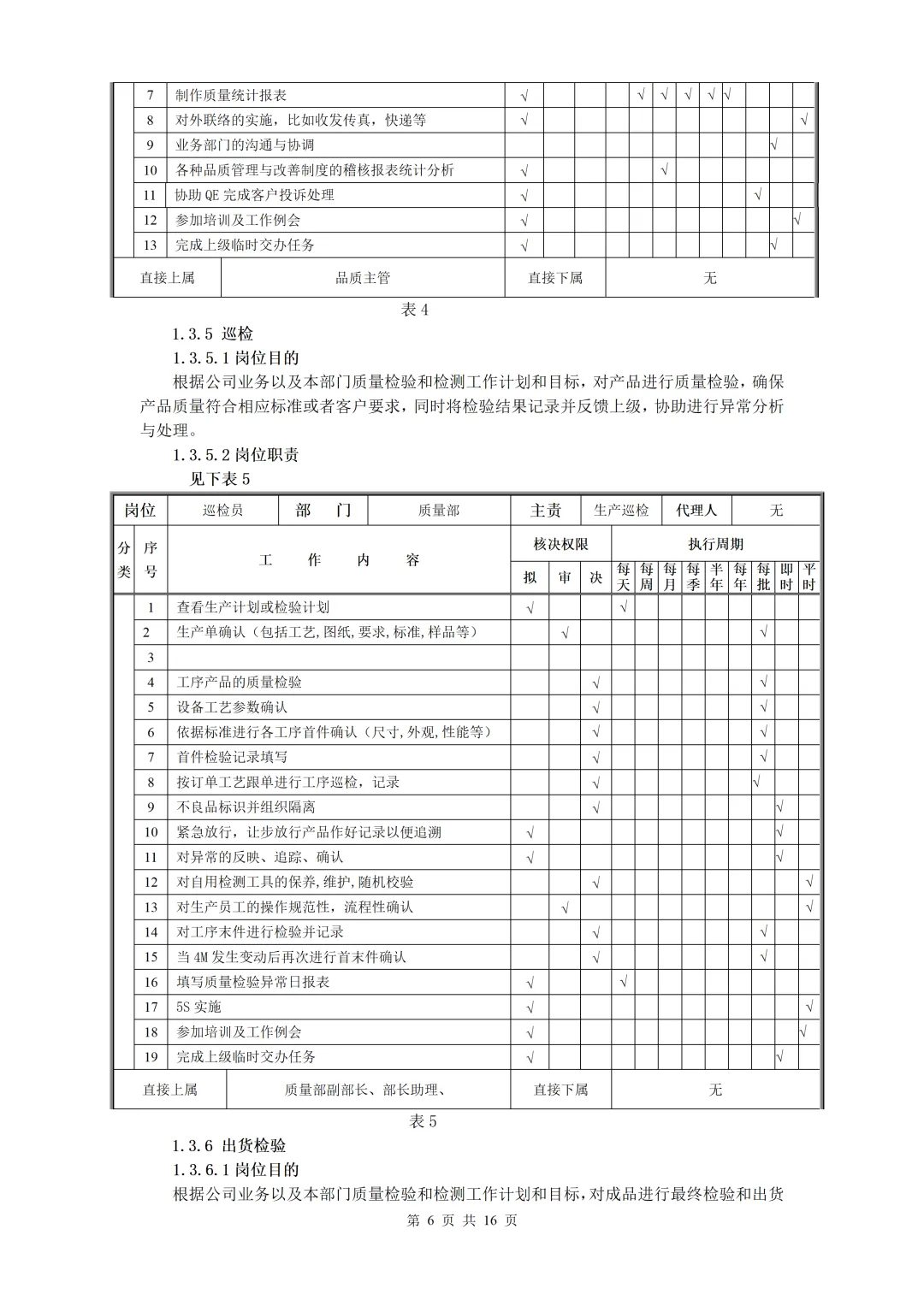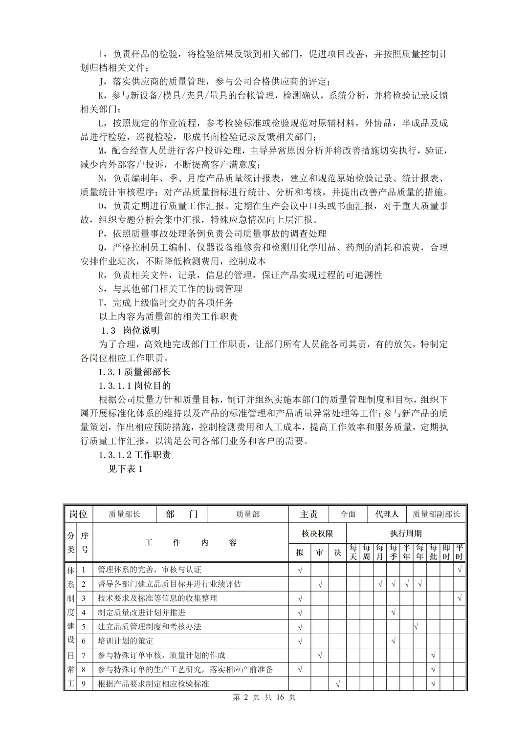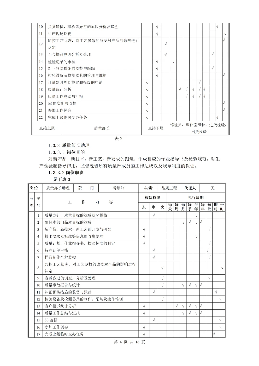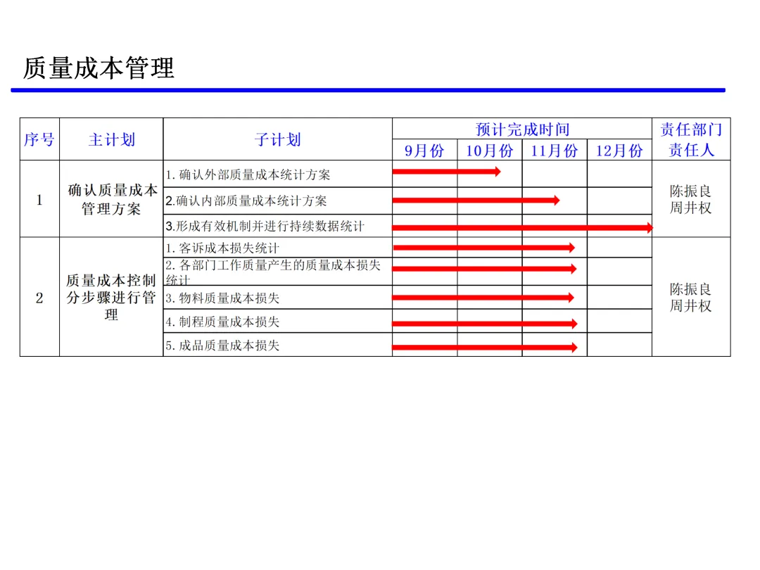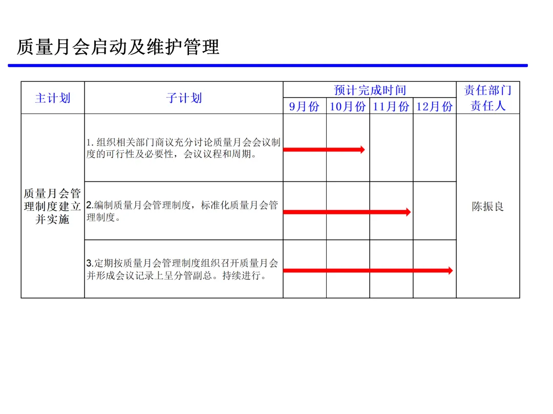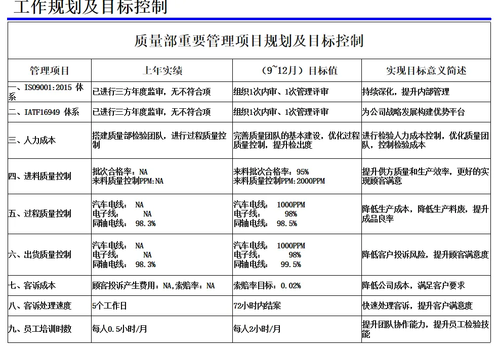 各部门根据公司总体质量目标,制定月度和季度质量目标。