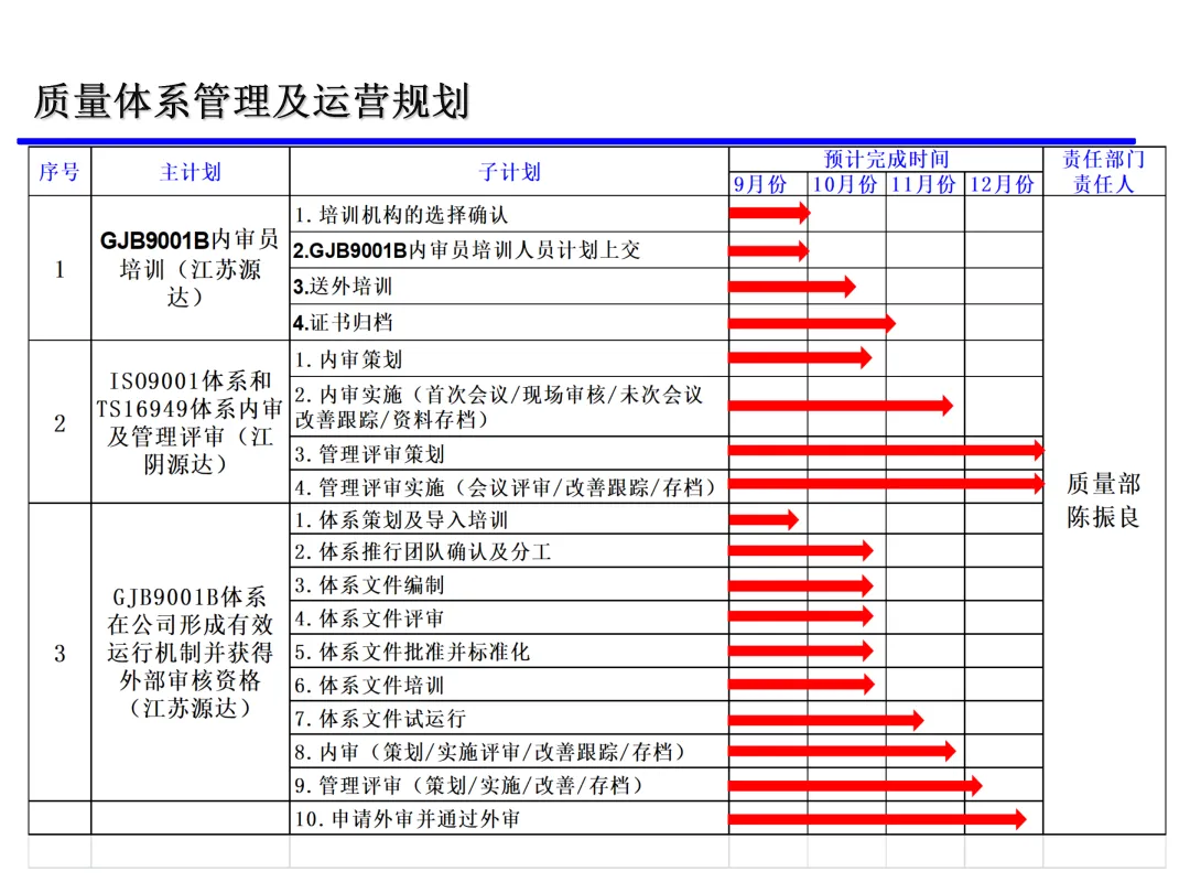 在第一季度完成ISO9001体系文件的全面修订和审核。