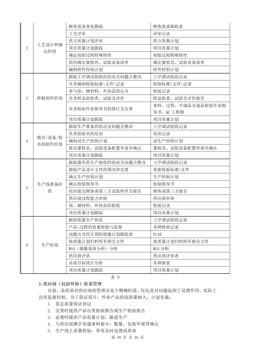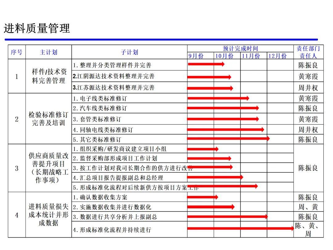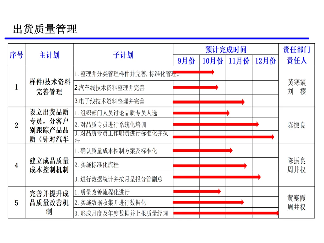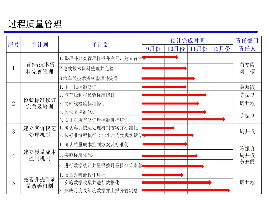 质量管理部负责汇总各部门进度,确保总体任务按时完成。