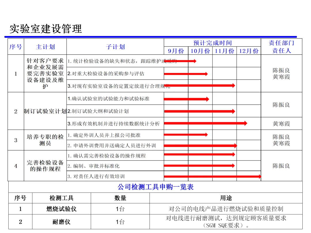 在第一季度完成所有检验设备的操作指导书制定工作。