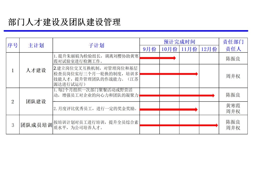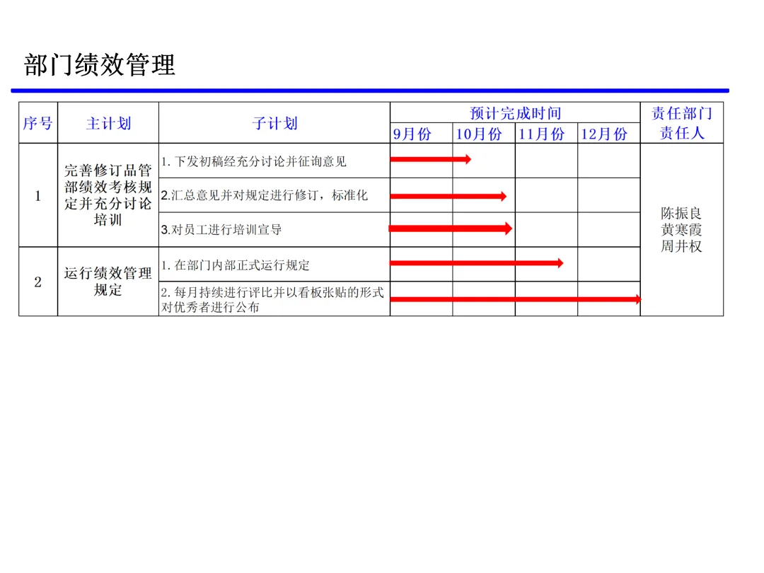 各部门责任人按计划执行任务,每周一对上周工作进行跟踪和验证。