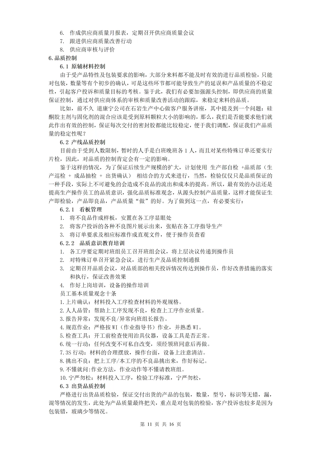 每月对质量控制流程进行一次内部审核,确保流程有效执行。