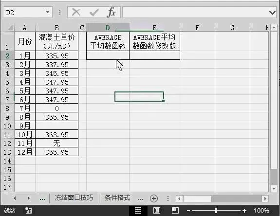第二个函数公式”=AVERAGE(IF(B2:B13<>0,B2:B13))”。