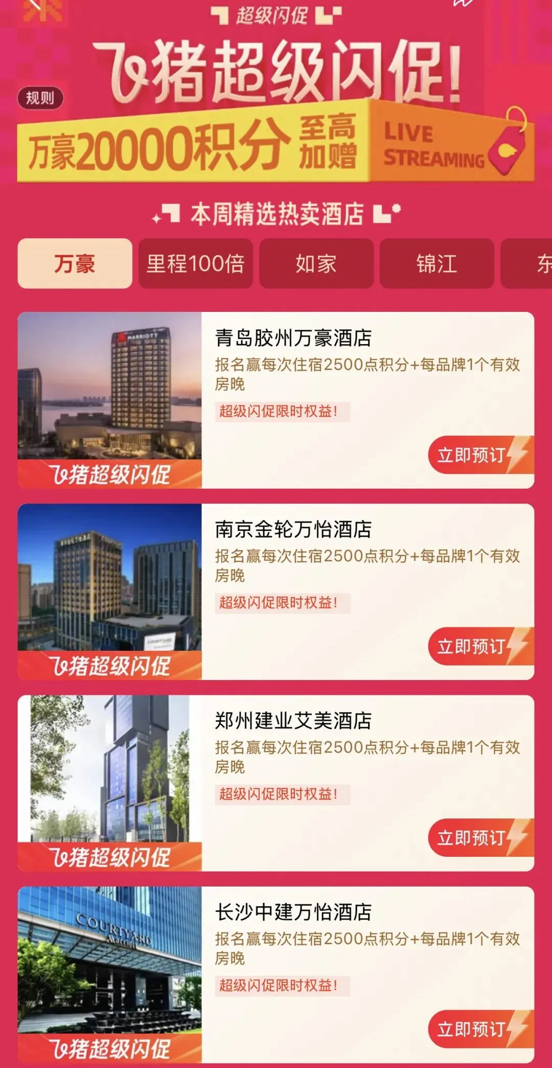 👉预订日期:2月25日-2月27日(25日0点开始)👉入住日期:2月25日-3月31日👉400+家酒店参与闪促,最高送20,000分