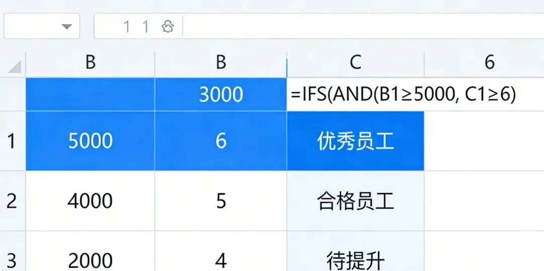 举个小例子:A1:C30是员工数据(A列姓名、B列业绩、C列入职月份),想筛选“业绩≥5000且入职≥6个月”的优秀员工,输入公式=IFS(AND(B1≥5000, C1≥6), "优秀员工", B1≥3000, "合格员工", 1=1, "待提升"),满足两个条件显示“优秀员工”,仅业绩达标显示“合格员工”,其余显示“待提升”,一步到位,不用反复核对多个条件!
