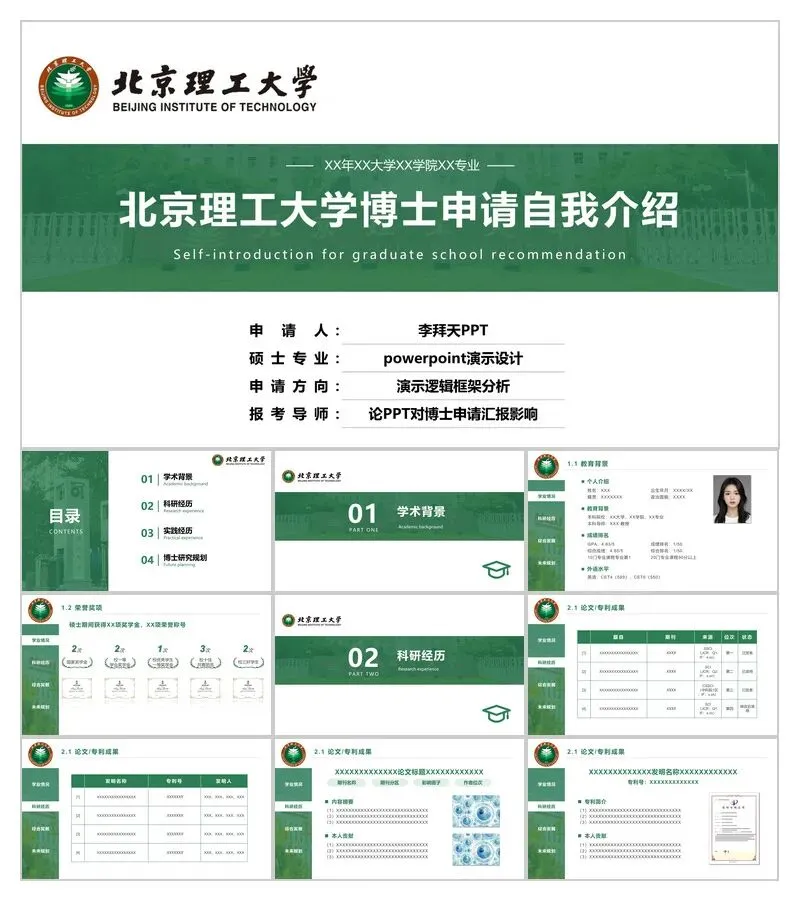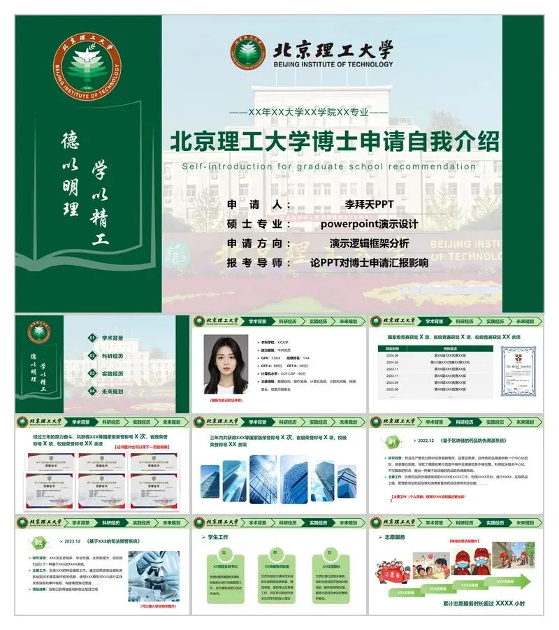 获取方式:关注本公众号,回复【北理工博士PPT】即可免费领取三套模板。