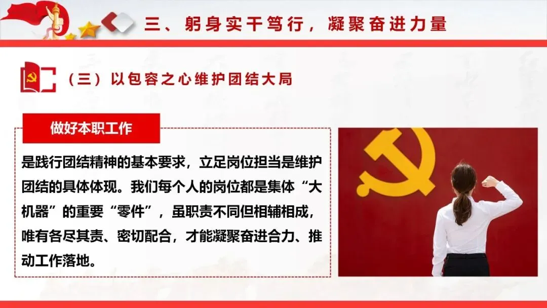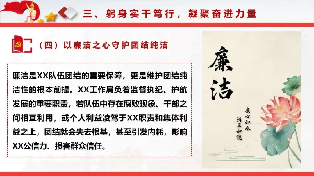 春回大地启新程,凝心聚力再出发。本次开年党课的核心任务,就是围绕“团结”这一永恒主题,开展集中动员教育,引导全体干部职工以心往一处想、劲往一处使的强大合力,攻坚克难、真抓实干,奋力推动各项工作开好局、起好步,以优异的实干实绩书写新时代XX工作高质量发展新篇章。今天,我就围绕“团结”这一核心主题与大家深入交流、共同学习。回望过往,我们攻坚克难、取得佳绩,靠的是团结协作;展望未来,我们谋求高质量发展、再创辉煌,依然要靠团结奋进。当前我们正处于爬坡过坎的关键阶段,只要全体干部职工坚守忠诚、实干、包容、廉洁之心,心往一处想、劲往一处使,相互配合、同心奋斗,就没有克服不了的困难,就能推动XX工作开好局、起好步,以优异实绩书写新时代XX工作高质量发展新篇章。【讲课稿:1.2万字;PPT:56页;视频案例:3个】